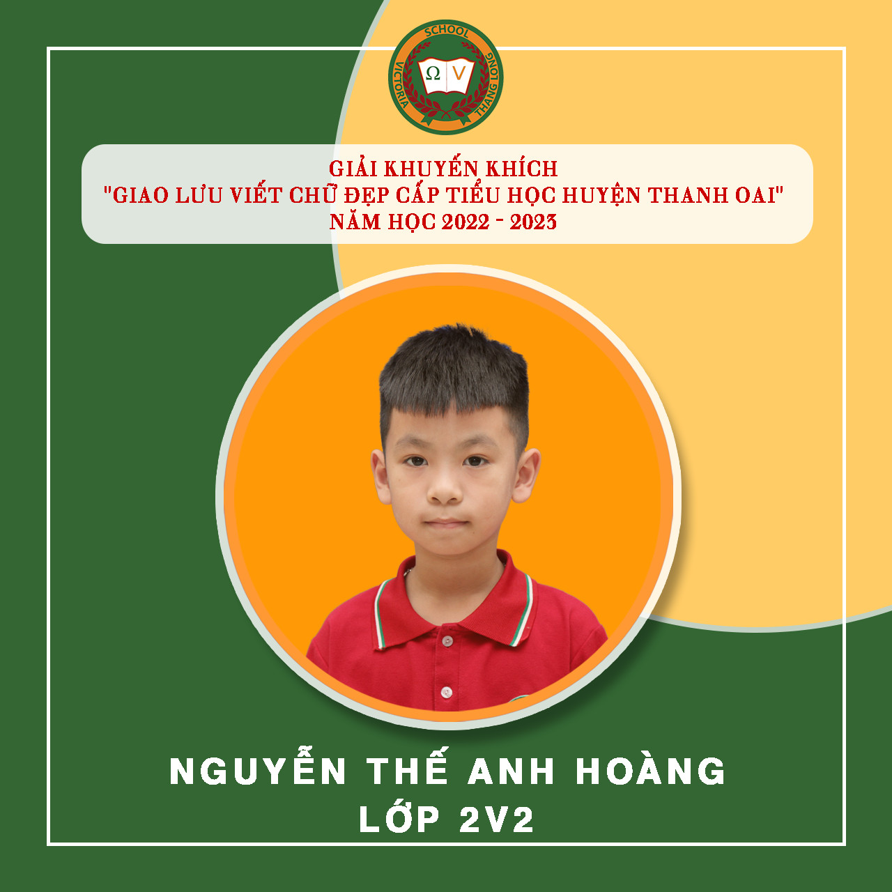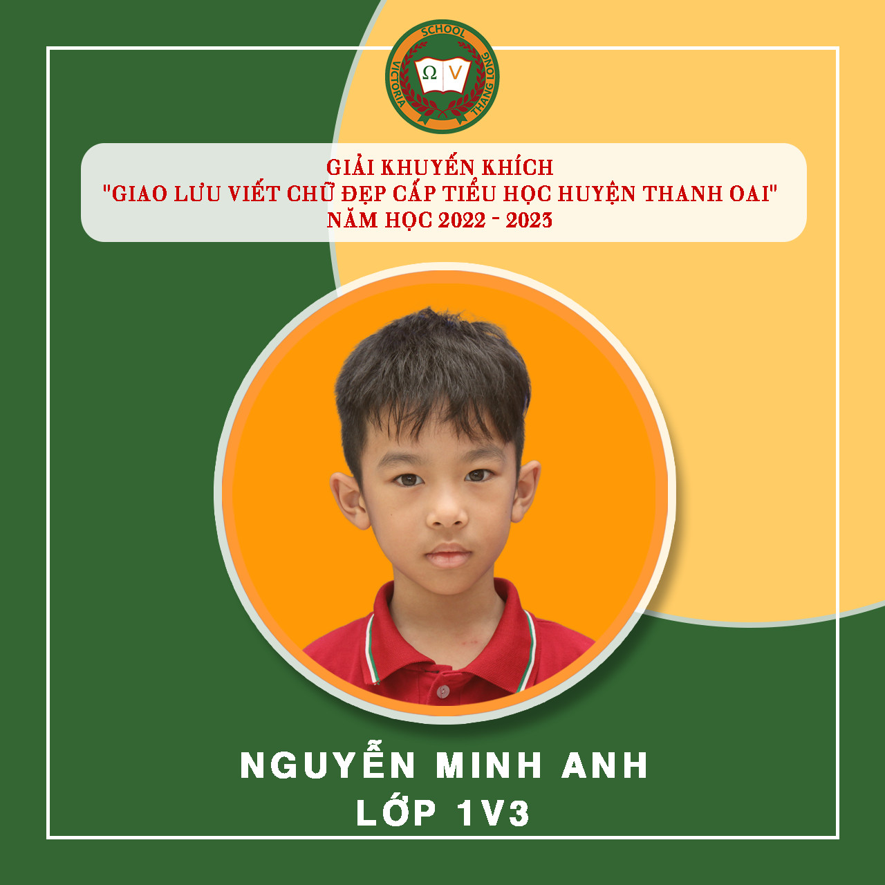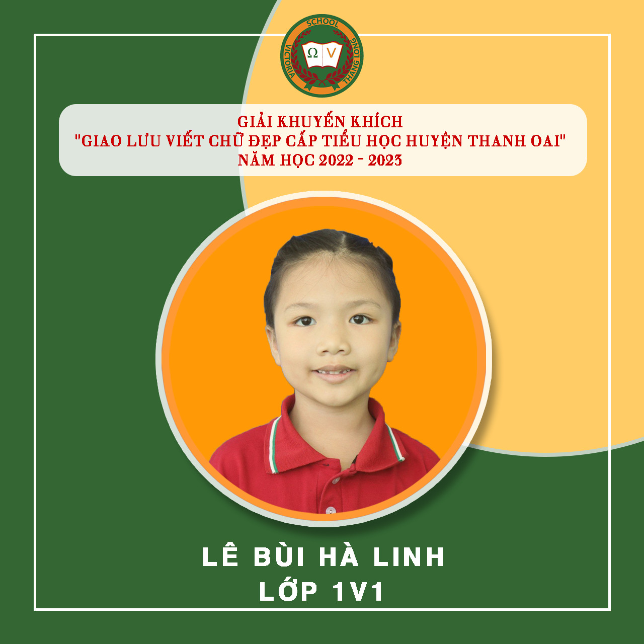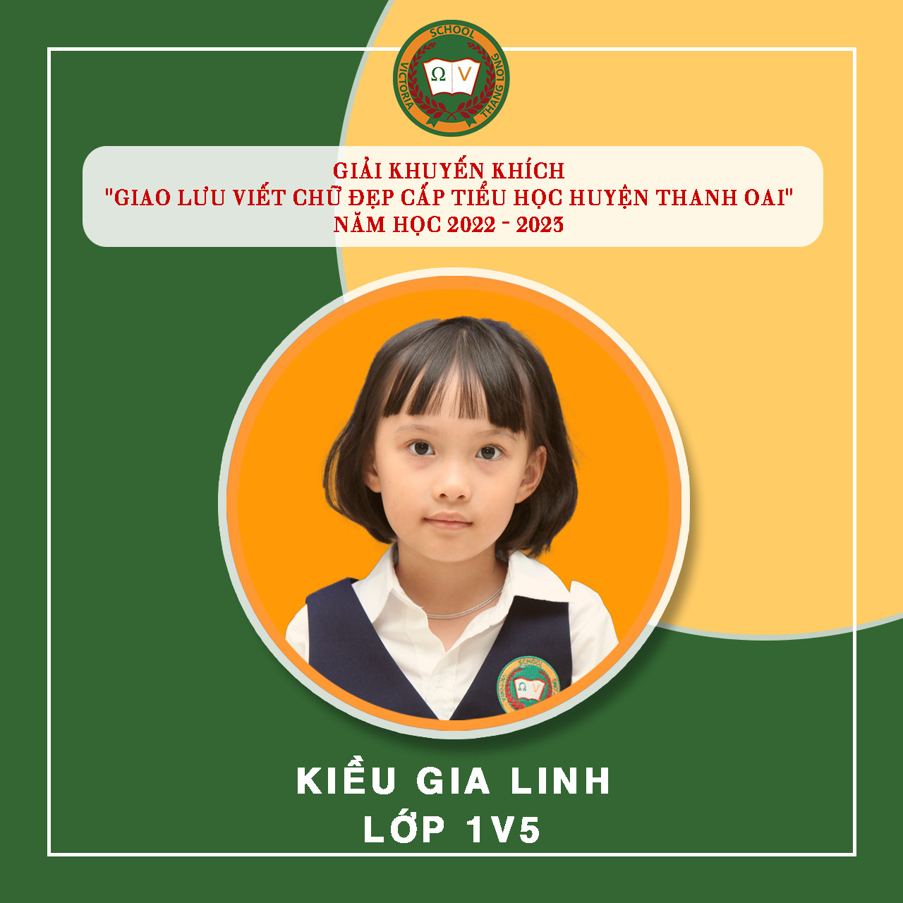 Việc luyện chữ, giữ gìn vở sạch chữ đẹp cho học sinh tại Vicschool luôn là một nhiệm vụ quan trọng nhằm rèn luyện, trang bị cho Vicsers đức tính cẩn thận, kiên trì, sự nền nếp và nâng cao khả năng thẩm mỹ, thể hiện “Nét chữ – nết người”. Luyện viết chữ đẹp cũng góp phần tạo hứng thú cho học sinh học tập và rèn luyện chữ viết, phát triển óc sáng tạo, biết quý trọng và giữ gìn tiếng nói, chữ viết của dân tộc. Tuần vừa qua, Nhà trường tiếp tục đón nhận niềm vui mới từ “Giao lưu viết chữ đẹp bậc Tiểu học Huyện Thanh Oai” – năm học 2022 – 2023 với 19 giải. Cụ thể: