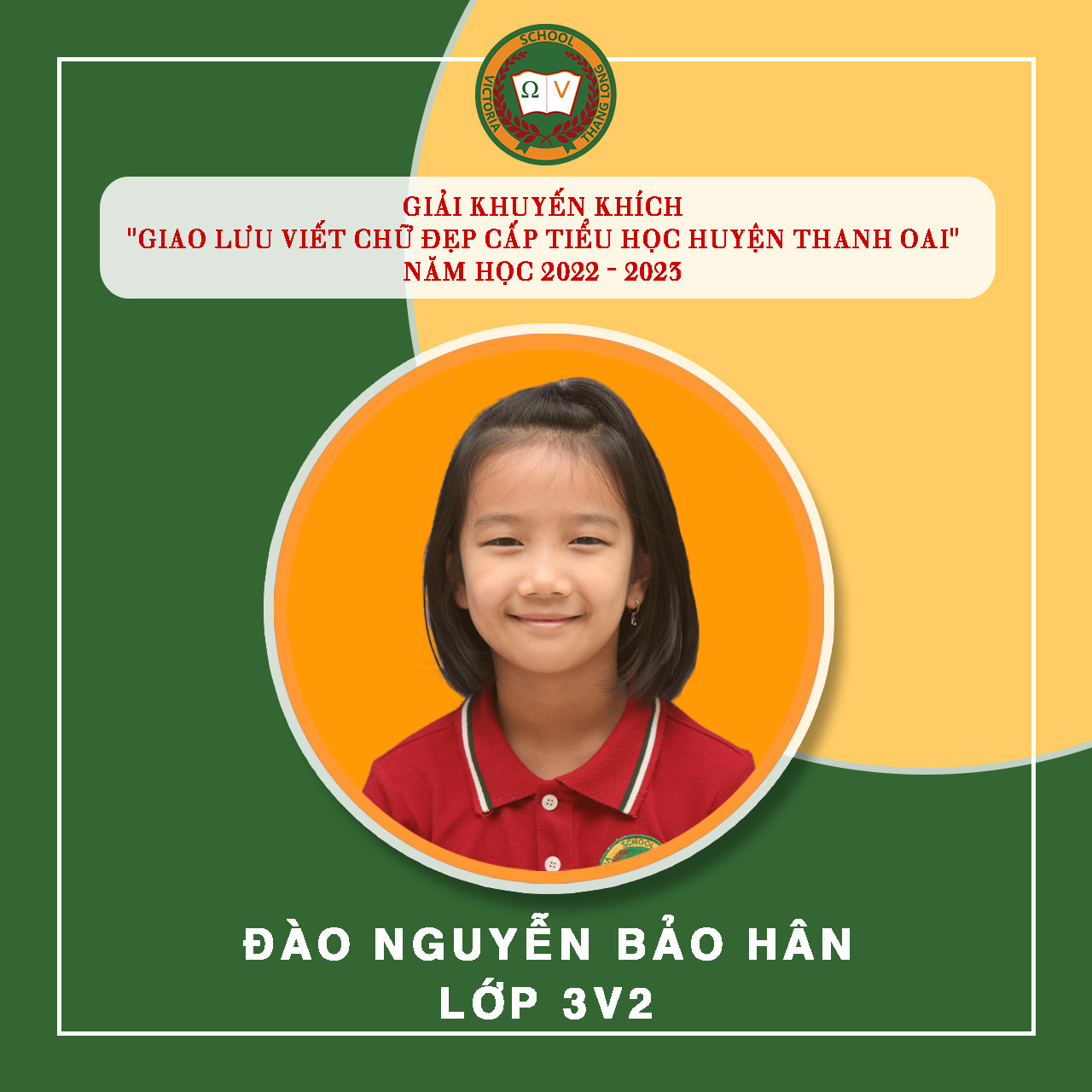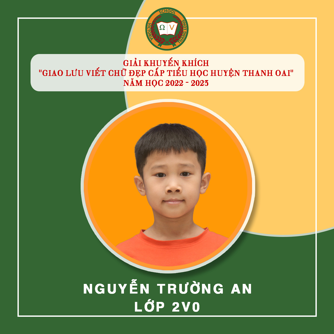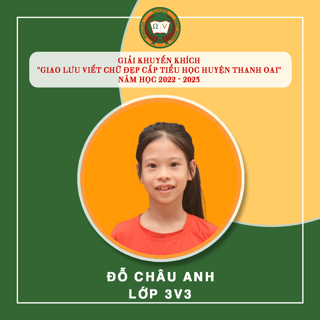 Việc luyện chữ, giữ gìn vở sạch chữ đẹp cho học sinh tại Vicschool luôn là một nhiệm vụ quan trọng nhằm rèn luyện, trang bị cho Vicsers đức tính cẩn thận, kiên trì, sự nền nếp và nâng cao khả năng thẩm mỹ, thể hiện “Nét chữ – nết người”. Luyện viết chữ đẹp cũng góp phần tạo hứng thú cho học sinh học tập và rèn luyện chữ viết, phát triển óc sáng tạo, biết quý trọng và giữ gìn tiếng nói, chữ viết của dân tộc. Tuần vừa qua, Nhà trường tiếp tục đón nhận niềm vui mới từ “Giao lưu viết chữ đẹp bậc Tiểu học Huyện Thanh Oai” – năm học 2022 – 2023 với 19 giải. Cụ thể: