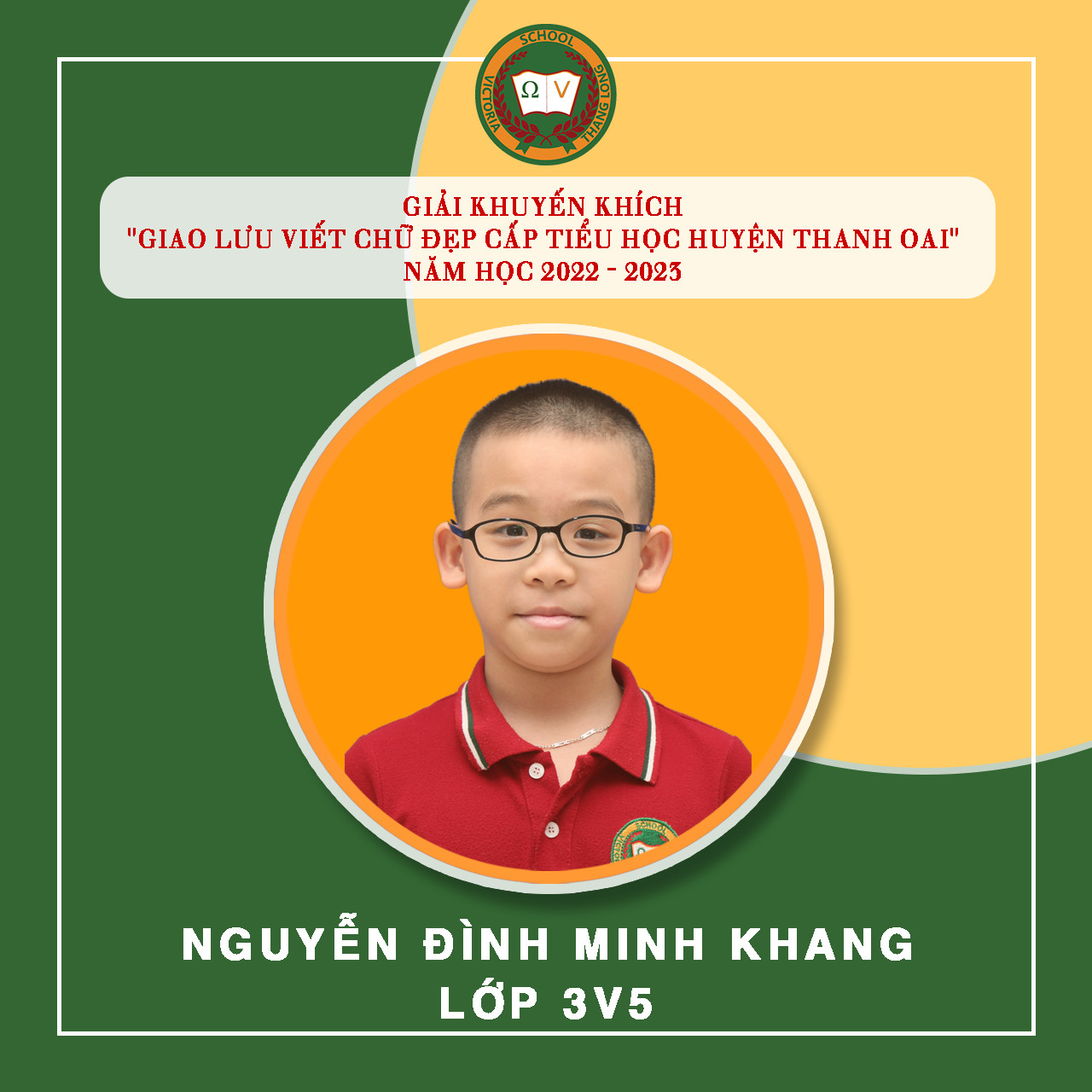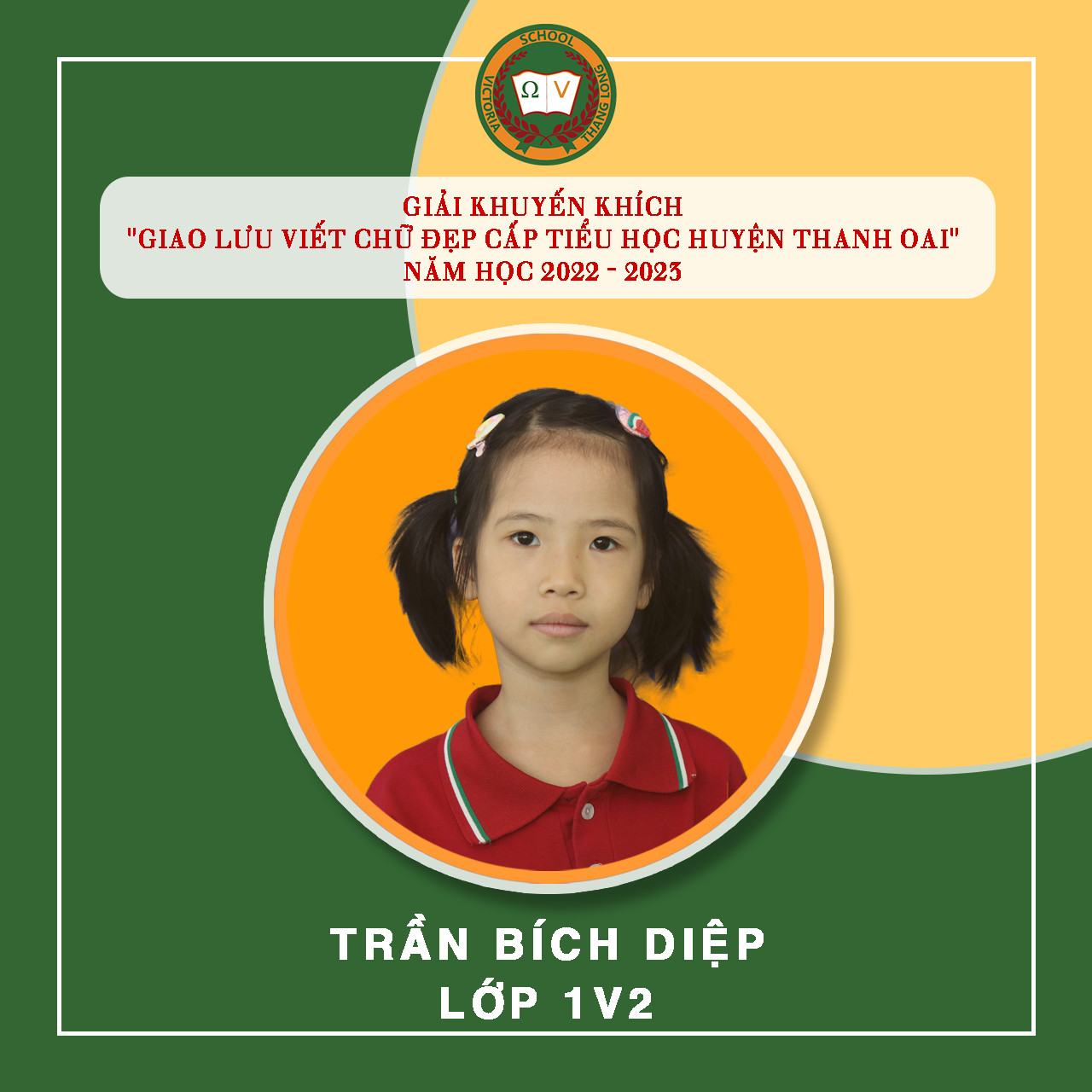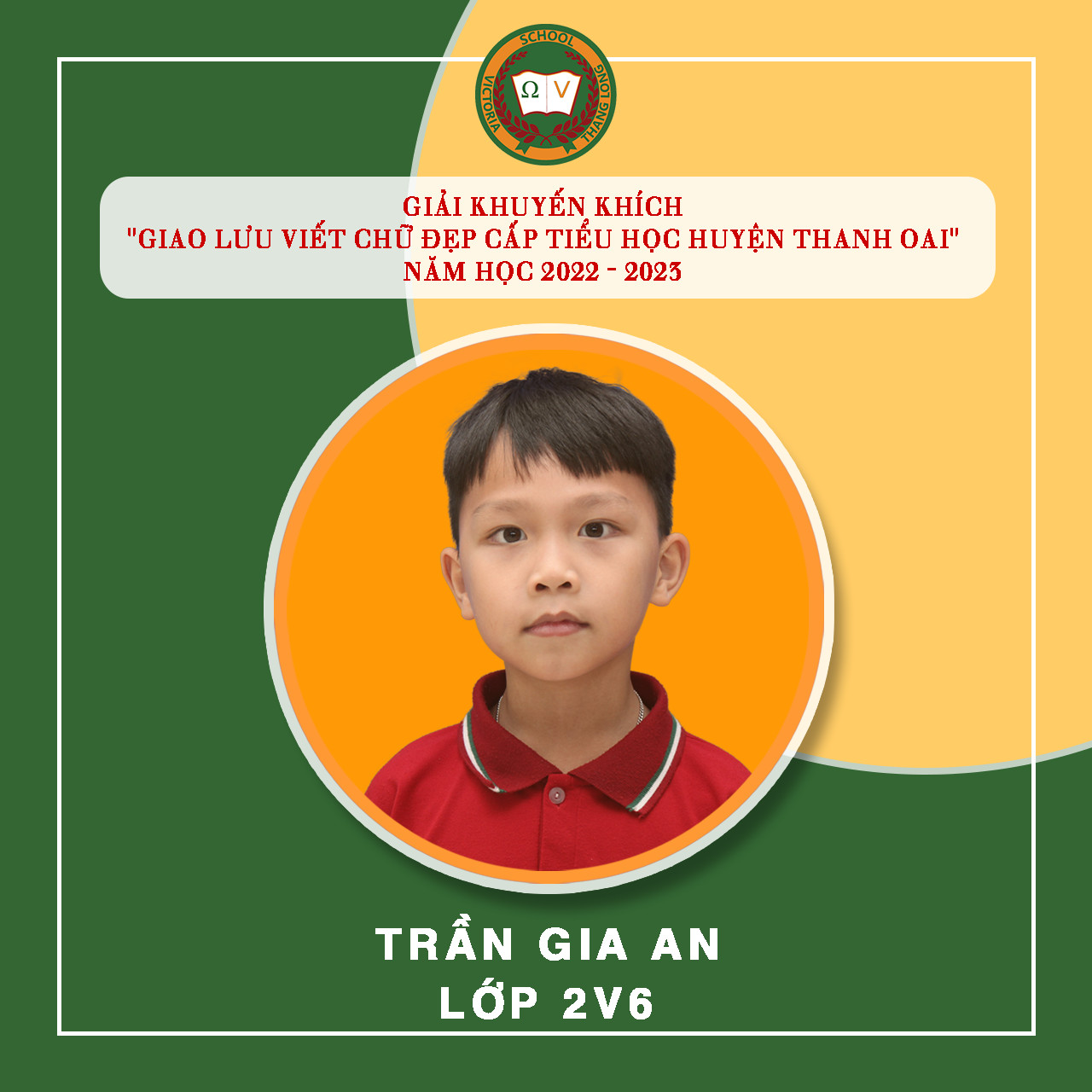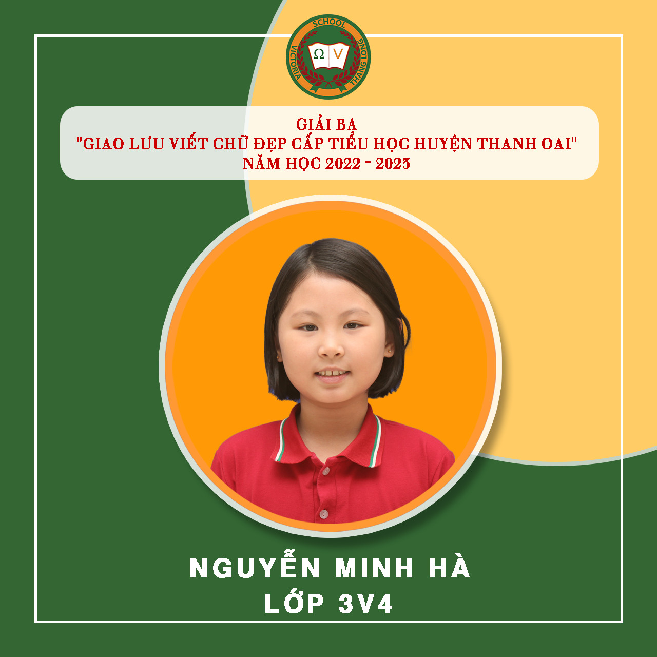 Việc luyện chữ, giữ gìn vở sạch chữ đẹp cho học sinh tại Vicschool luôn là một nhiệm vụ quan trọng nhằm rèn luyện, trang bị cho Vicsers đức tính cẩn thận, kiên trì, sự nền nếp và nâng cao khả năng thẩm mỹ, thể hiện “Nét chữ – nết người”. Luyện viết chữ đẹp cũng góp phần tạo hứng thú cho học sinh học tập và rèn luyện chữ viết, phát triển óc sáng tạo, biết quý trọng và giữ gìn tiếng nói, chữ viết của dân tộc. Tuần vừa qua, Nhà trường tiếp tục đón nhận niềm vui mới từ “Giao lưu viết chữ đẹp bậc Tiểu học Huyện Thanh Oai” – năm học 2022 – 2023 với 19 giải. Cụ thể: