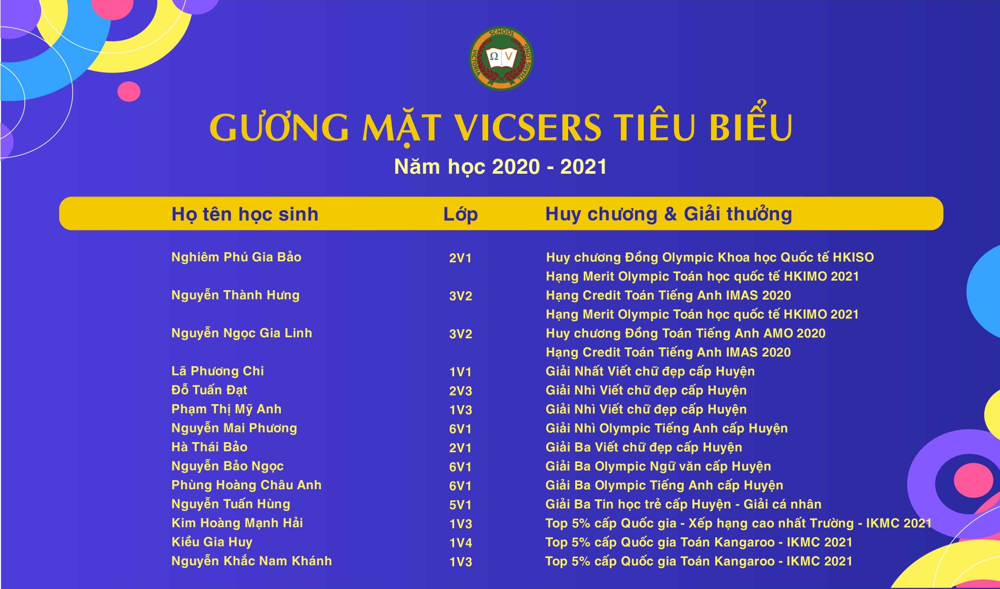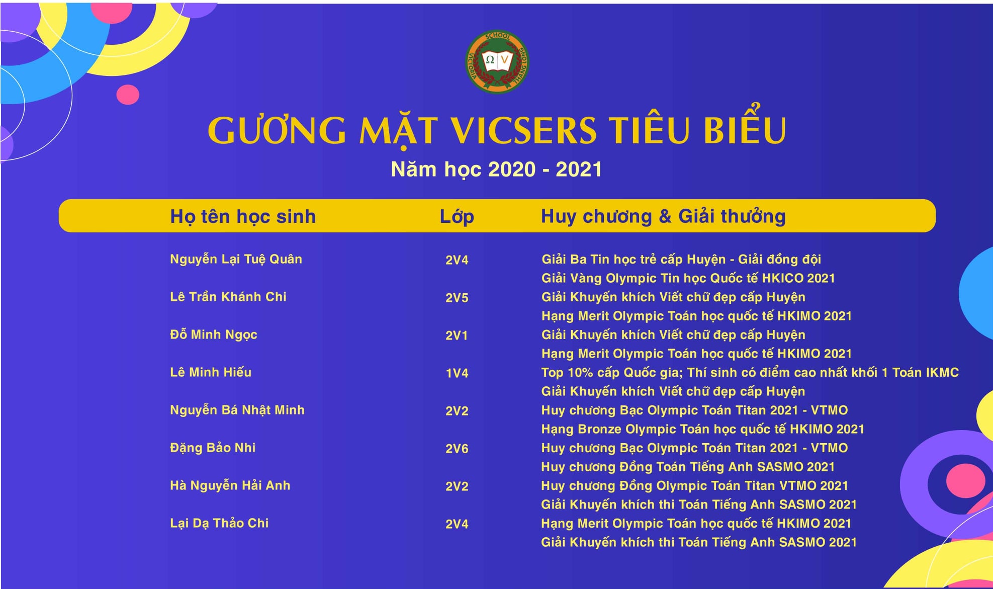 361 GIẢI THƯỞNG VÀ HUY CHƯƠNG TRONG NĂM HỌC 2020 – 2021