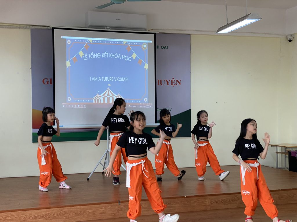 Không chỉ được đánh giá năng lực Toán, Tiếng Việt, Tiếng Anh sau khóa học cùng cô Hồng Anh – GVCN và thầy Kevin – giáo viên bản ngữ, Vicstars được tham gia biểu diễn tiết mục hát “Lớp Một thân yêu” và thưởng thức chương trình văn nghệ sôi động và đầy màu sắc của CLB Dance Vicschool. Các khán giả phải trầm trồ, khen ngợi và ấn tượng trước sự năng nổ, nhiệt huyết và tràn đầy năng lượng của các bạn nhỏ trong phần trả lời cuộc thi “Rung chuông vàng” tràn đầy cảm xúc.