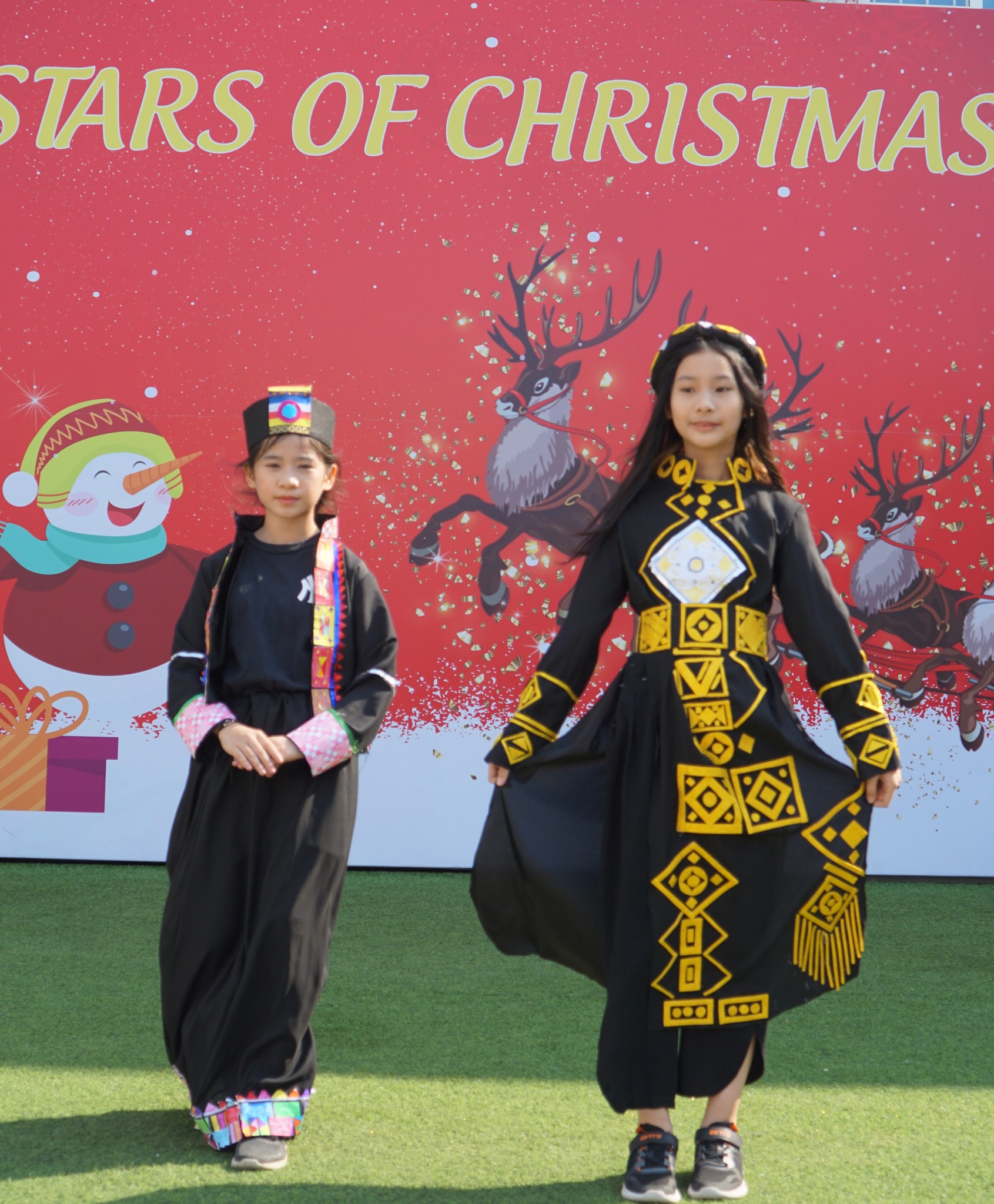 Bộ sưu tập “Sắc màu các dân tộc Việt Nam” chính là sản phẩm báo cáo dự án học tập trải nghiệm “Toán học & di sản” của khối 4,5 tại Bảo tàng Dân tộc học Việt Nam trong tháng 11 vừa qua. Sau gần hai tuần triển khai, những “đứa con tinh thần” của Vicsers khối 4, 5 đã hoàn thành. Các bộ trang phục được tạo nên bởi nhiều chất liệu khác nhau, lấy cảm hứng từ các họa tiết hình học, kết hợp cùng các dữ liệu thu thập dữ liệu từ Bảo tàng và được tích lũy qua các giờ Toán, Mĩ thuật, Kĩ thuật, Lịch sử. Bộ trang phục nào cũng được các bạn nhỏ đầu tư công phu, trang trí rất sinh động, và hơn cả đó là tinh thần đoàn kết, cùng nhau sáng tạo nên những bộ trang phục mãn nhãn, ấn tượng về những giá trị văn hóa truyền thống của các dân tộc Việt. Chính bởi vậy, tại cuộc thi “Vẽ tranh và biểu diễn trang phục truyền thống”(Lễ kỷ niệm 30 năm ngoại giao Việt Nam – Hàn Quốc) và “Stars of Christmas – Lễ hội giáng sinh Vicschool ,Vicsers K4,5 đã tự tin trình diễn BST thời trang này và đã thu hút sự cổ vũ, quan tâm của BGK, khán giả, các vị khách mời tham dự chương trình.