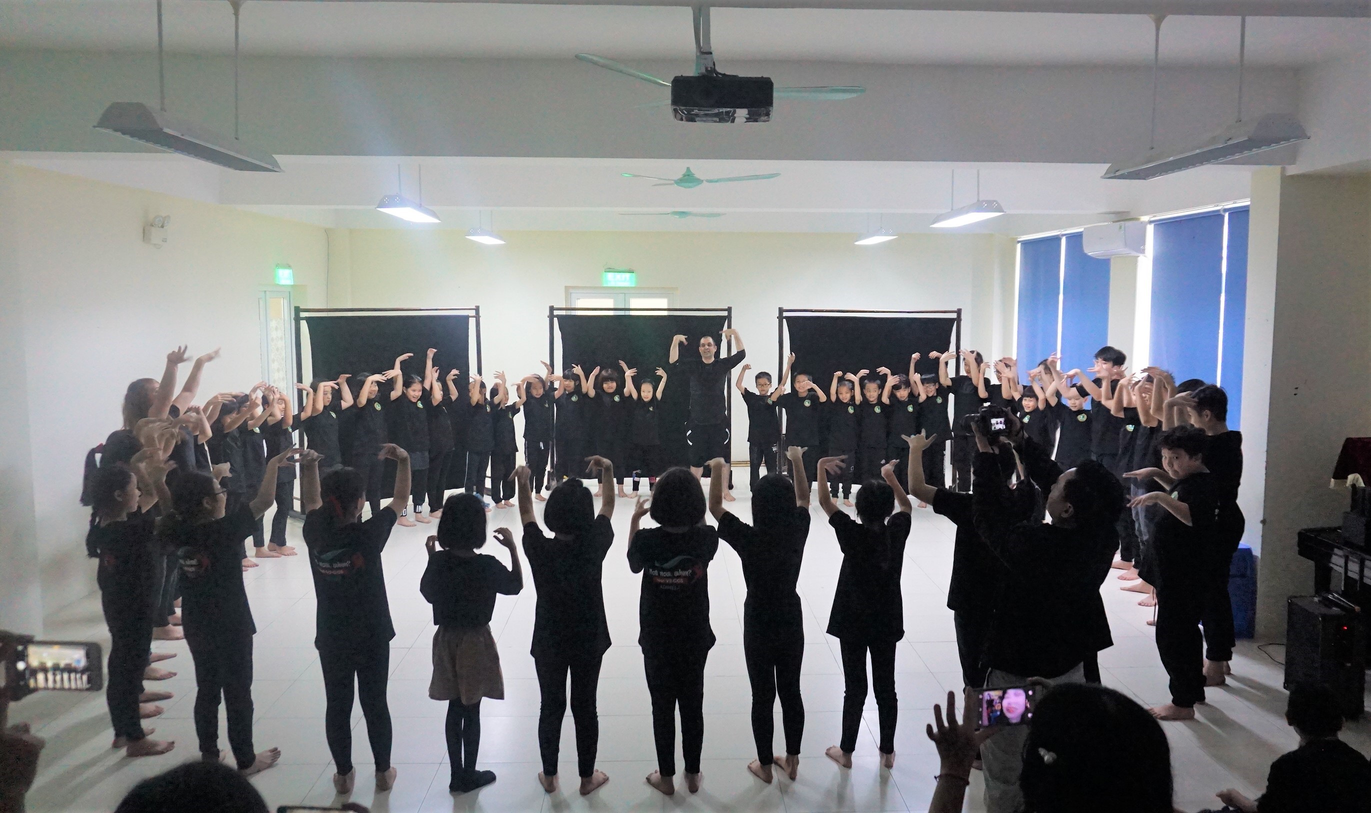 Trong tiết học Kịch Nghệ, chúng tớ được các thầy cô bản ngữ cho tham gia các trò chơi rèn luyện kiểm soát cơ thể, nhận thức về không gian vật lý, nhịp điệu, giọng nói, năng lượng… Cả lớp cùng học cách tổ chức và làm việc cùng nhau như một đội để cùng tạo ra sản phẩm nghệ thuật. Mỗi cá nhận đều cảm thấy thật thú vị khi là một mảnh ghép của một tiết học ý nghĩa!