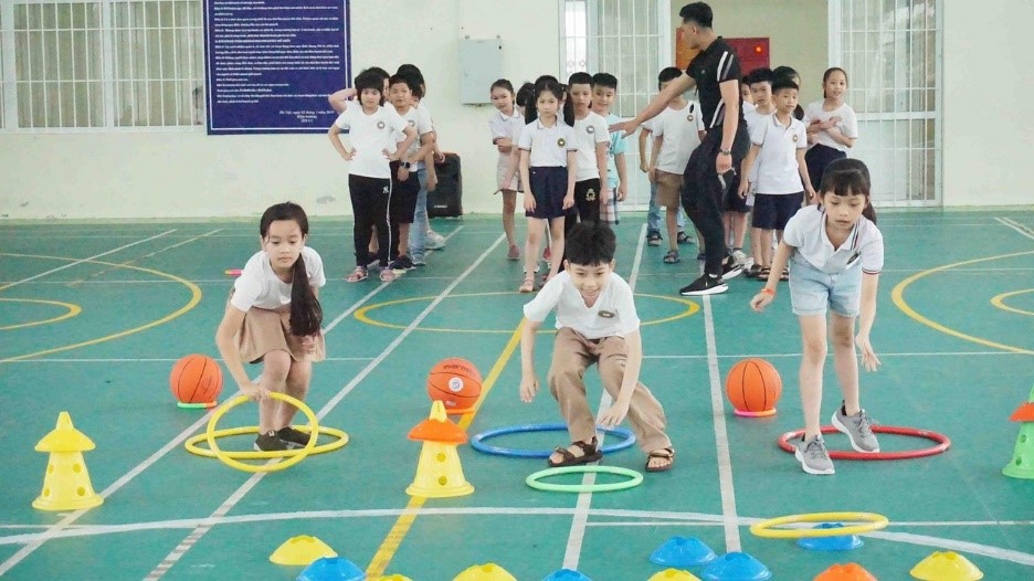 Giáo dục thể chất của trường học không dàn trải mà học tập trung theo môn học hàng tuần, tháng giúp các con nhớ được các kiến thức lâu nhất.