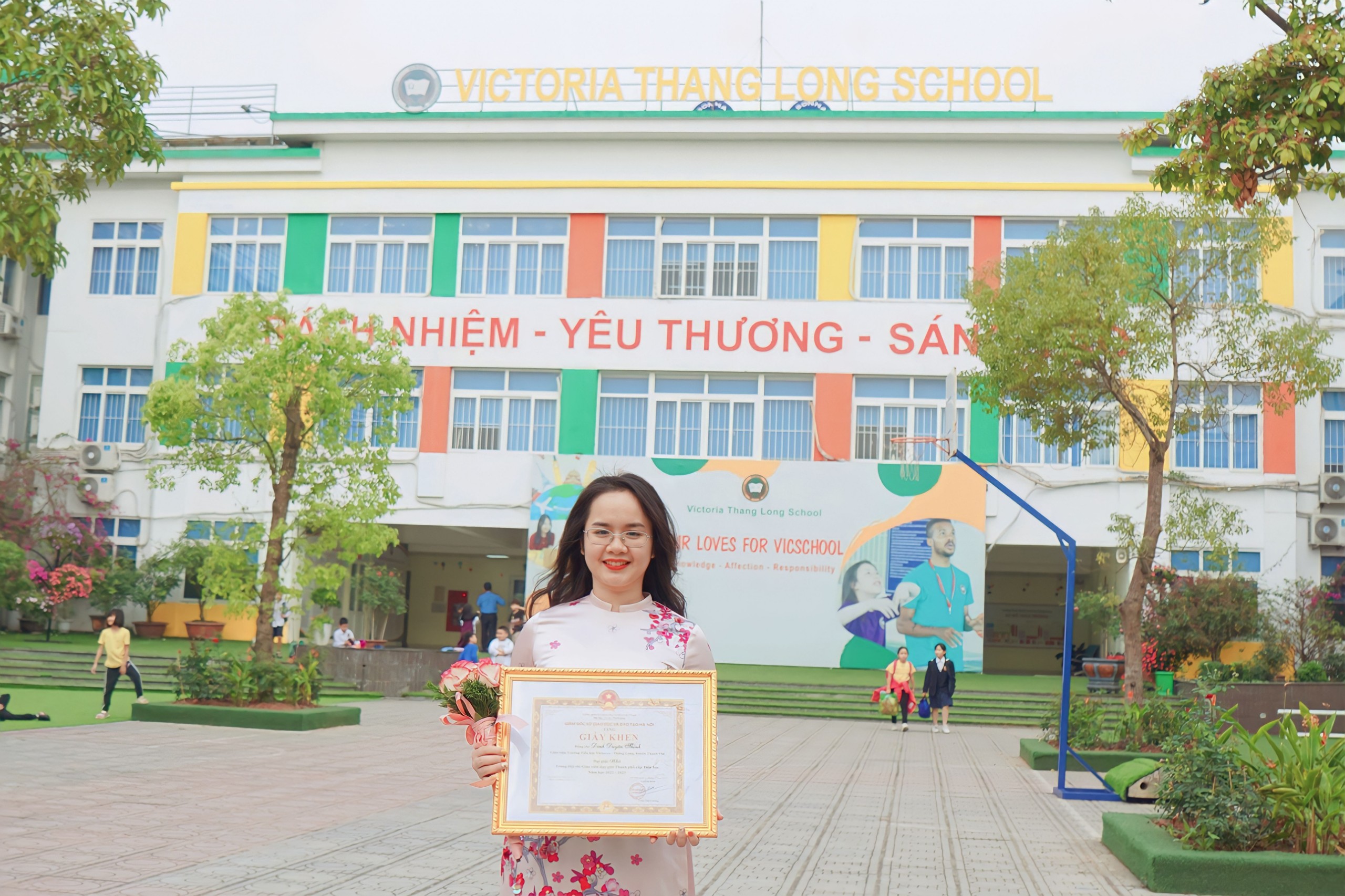 Một lần nữa, xin chúc mừng cô giáo Đinh Duyên Thịnh đã đạt kết quả xuất sắc với sự nỗ lực không ngừng nghỉ, mang đến cho học sinh tiết dạy nhiều cảm xúc, được Sở Giáo dục biểu dương trong Báo cáo tổng kết tại Hội nghị! Xin cảm ơn Phòng GD & ĐT Huyện Thanh Oai, BGH Victoria Thăng Long đã quan tâm, tạo điều kiện, động viên để mỗi giáo viên được phấn đấu, phát huy năng lực chuyên môn, hoàn thiện hơn nữa để mang đến những bài học hấp dẫn, tiết dạy truyền cảm hứng cho các học trò!