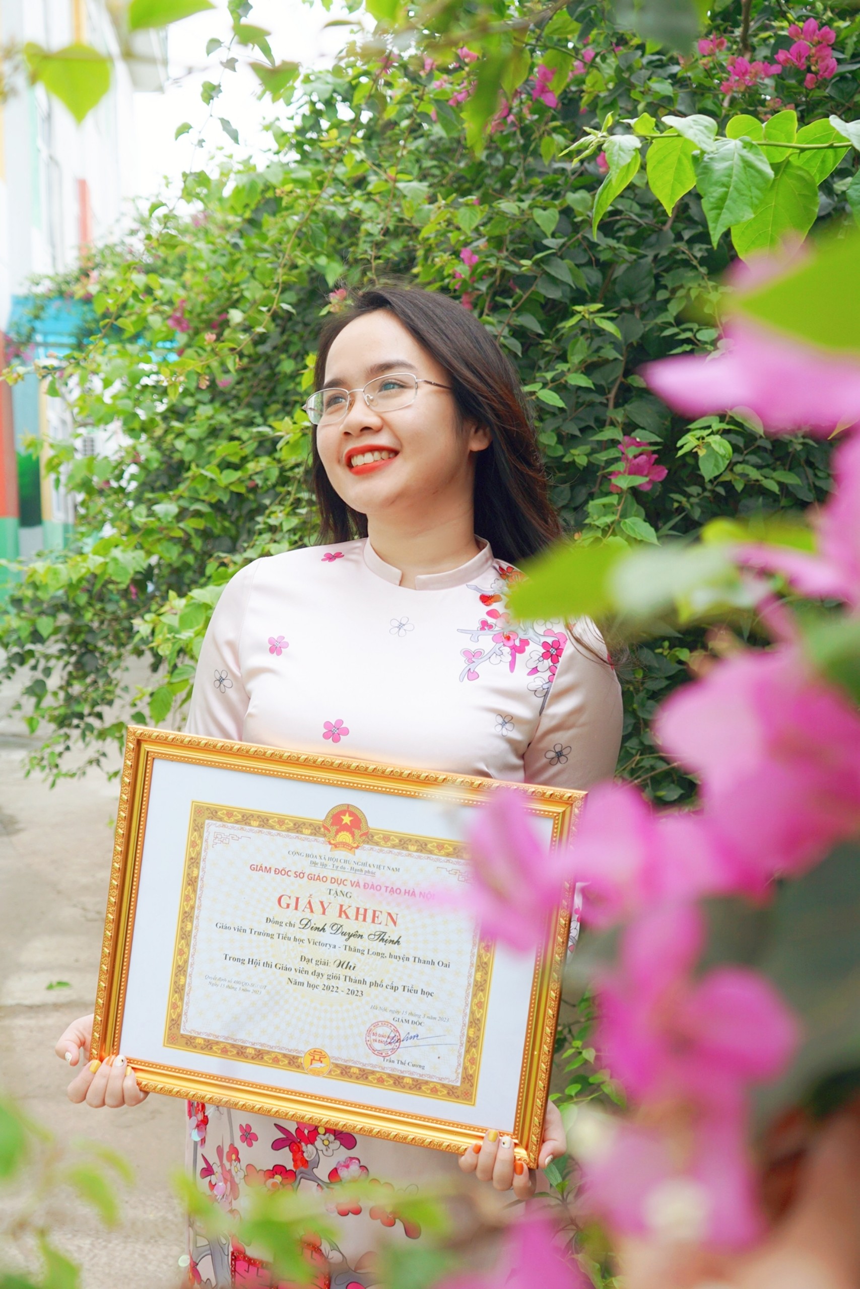 Cô Đinh Duyên Thịnh chia sẻ: “Hội thi Giáo viên dạy giỏi cấp Tiểu học Thành phố Hà Nội năm học 2022-2023 đã để lại cho tôi nhiều cảm xúc. Đó là niềm vinh dự khi tôi được PGD & ĐT huyện Thanh Oai và BGH Nhà trường tin tưởng và trao cơ hội; là sự căng thẳng, hồi hộp từ khi nhận bài dạy và cảm xúc ấy theo tôi đến tận thời điểm này. Giờ đây, khi cầm trên tay tấm bằng khen này, cảm xúc trong tôi là sự biết ơn và niềm tự hào. Cảm ơn Phòng GD & ĐT Huyện Thanh Oai, BGH và các đồng nghiệp đã luôn động viên, hỗ trợ tôi trong suốt thời gian dự thi. Cảm ơn các con học sinh đã tạo động lực và truyền cảm hứng cho cô trong tiết dạy. Giải thưởng lần này sẽ là động lực truyền cảm hứng để cá nhân tôi và các đồng nghiệp sẽ tiếp tục cố gắng nhiều hơn nữa…”