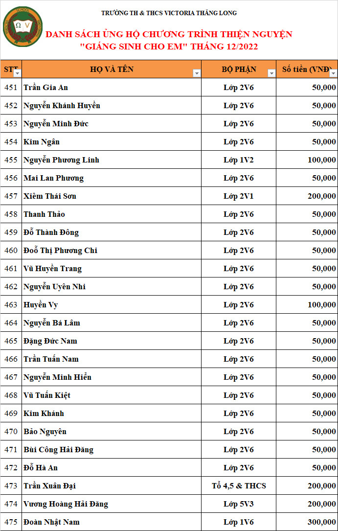 DANH SÁCH CÁC TẬP THỂ, CÁ NHÂN ỦNG HỘ CHƯƠNG TRÌNH THIỆN NGUYỆN GIÁNG SINH CHO EM (ĐỢT CUỐI)