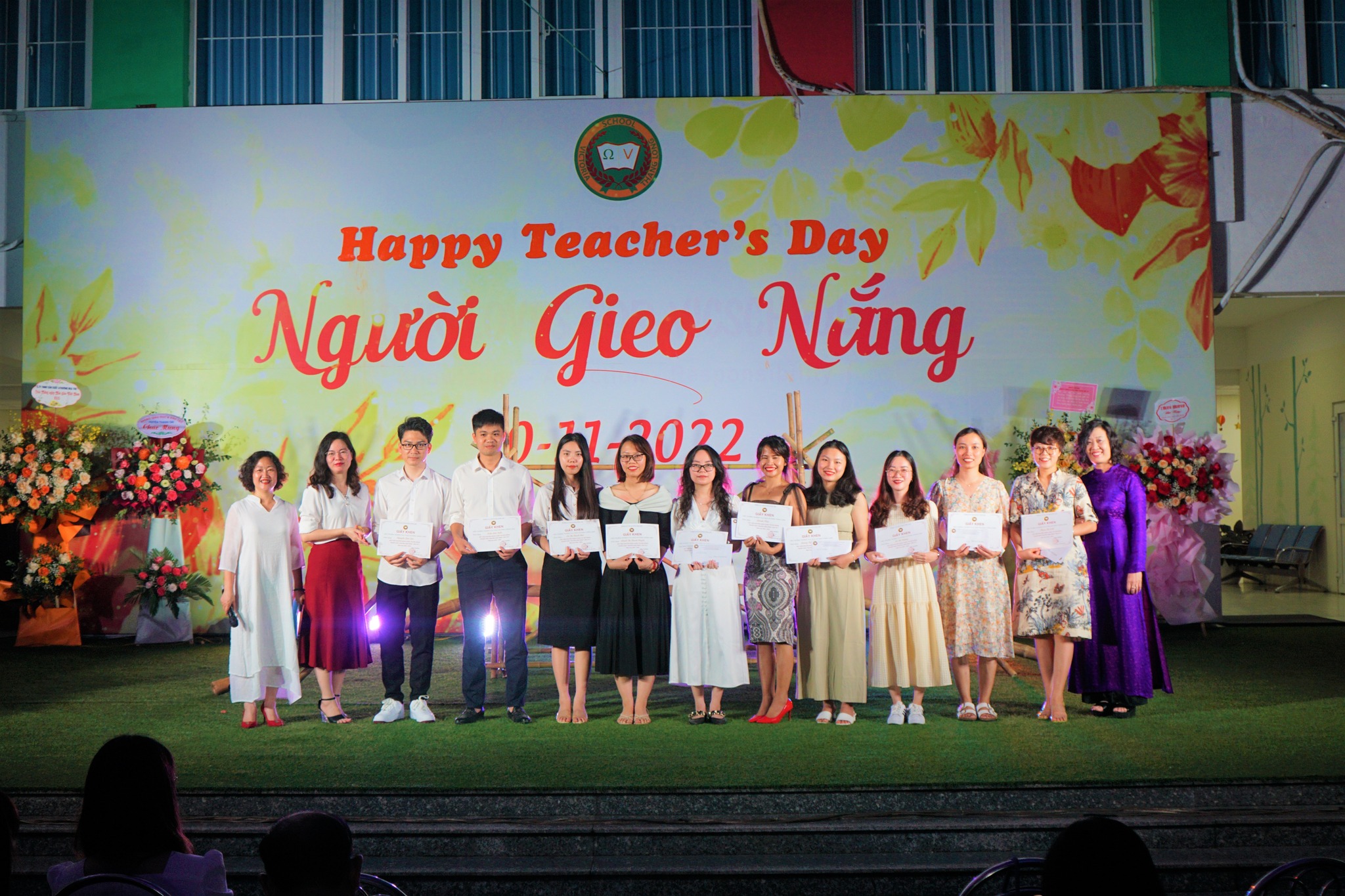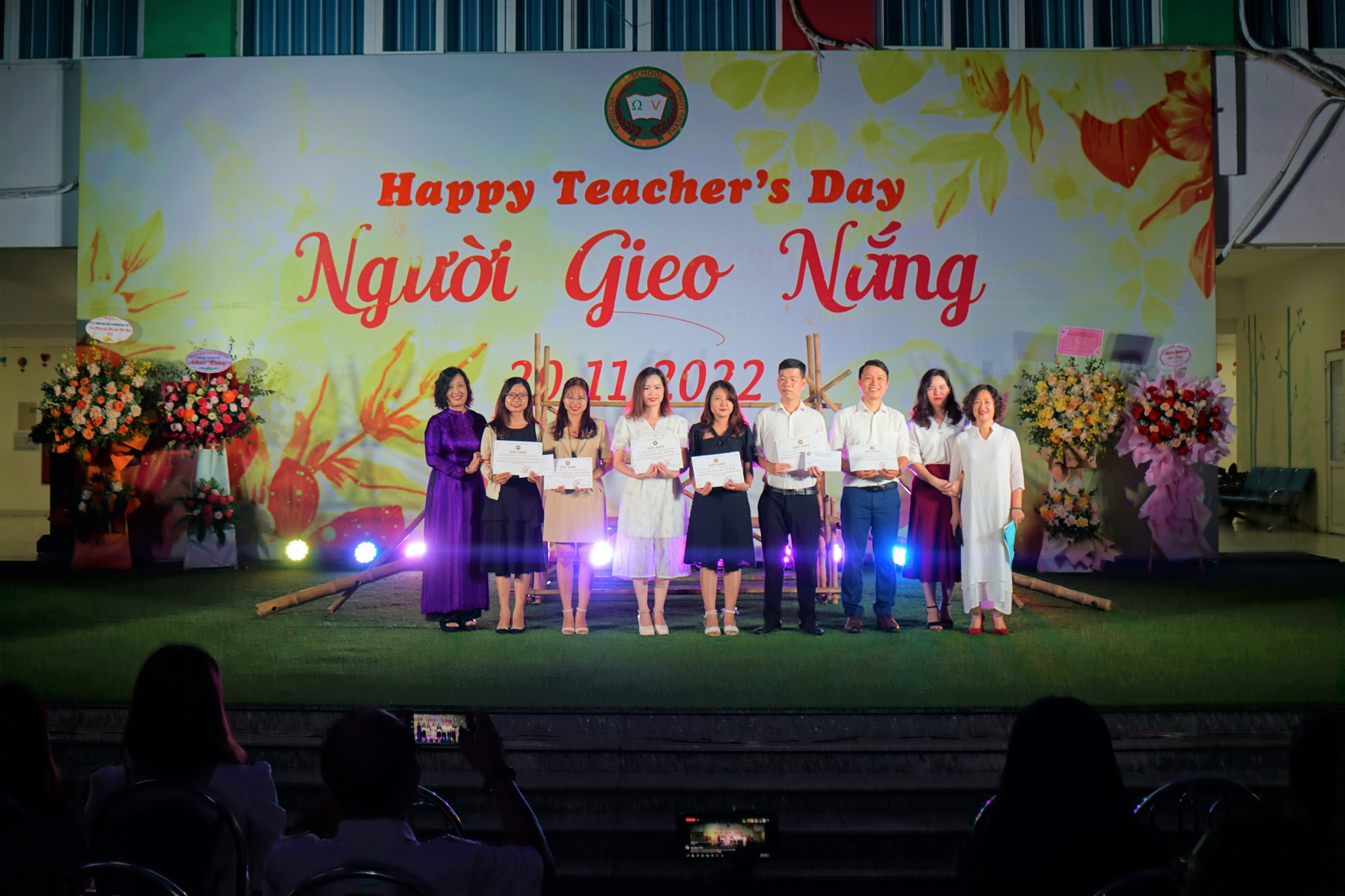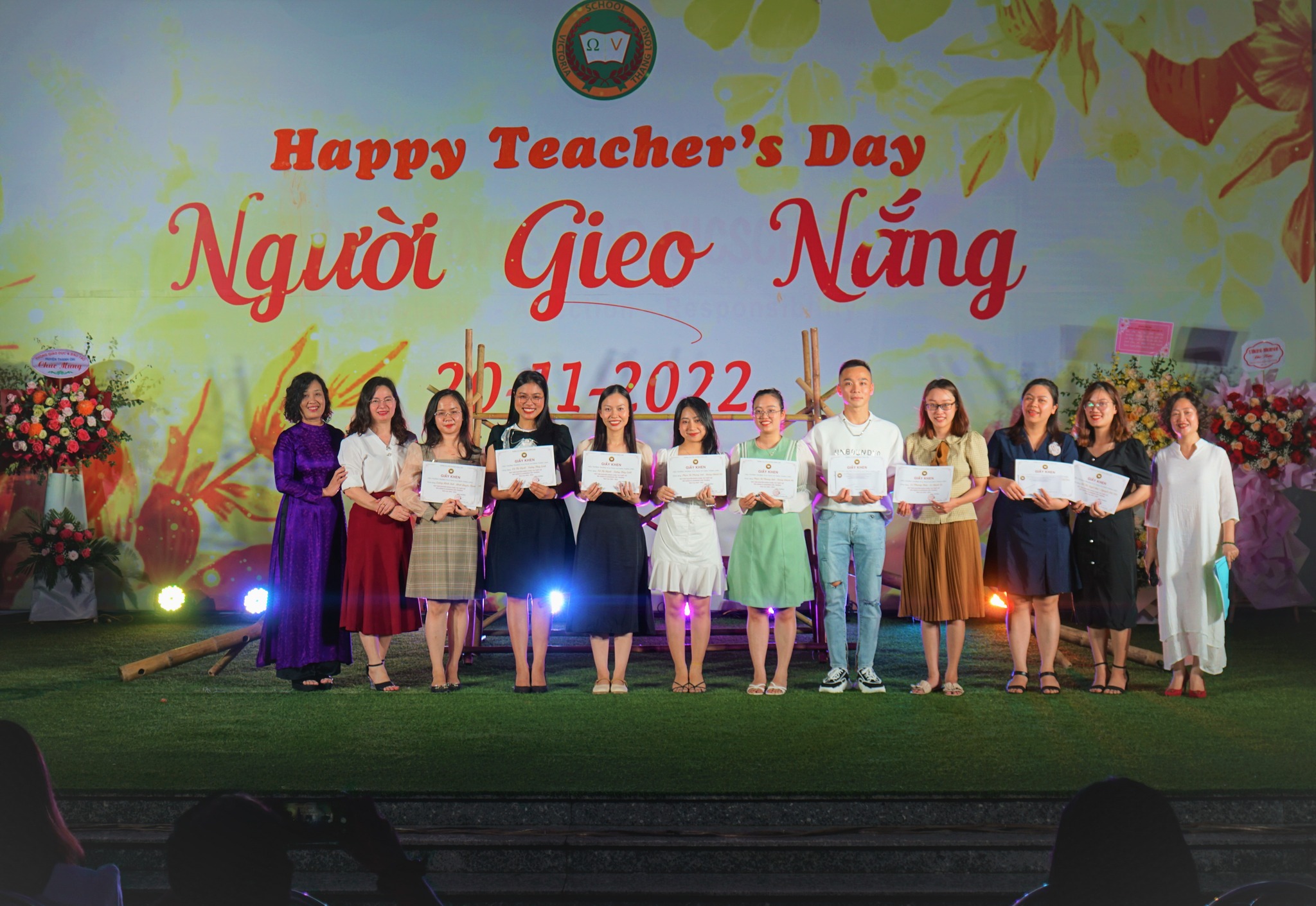Không khí đêm tri ân trở nên sôi động hơn khi thầy cô giáo Vicschool nhận được rất nhiều lời chúc và khen thưởng từ BGH Nhà trường qua các cuộc thi Hội giảng “Người thầy truyền cảm hứng”; thiết kế bài giảng điện tử Elearing và phần thưởng may mắn bất ngờ từ cô Ngân Hoa. Những nụ cười hân hoan, những lời chúc tốt đẹp, những bông hoa tươi thắm đã làm nên một buổi lễ đầy màu sắc ấn tượng.