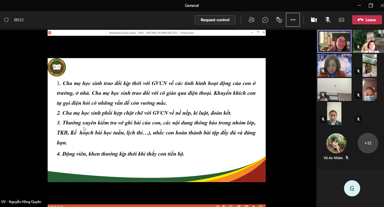 HỘI NGHỊ CHA MẸ HỌC SINH CUỐI HỌC KỲ I NĂM HỌC 2021 – 2022