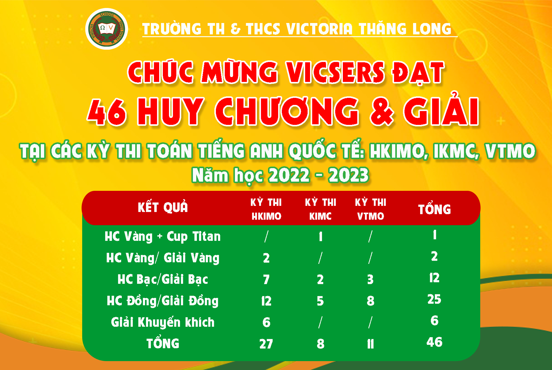 KẾT QUẢ RỰC RỠ CỦA VICSERS TẠI CÁC KỲ THI TOÁN TIẾNG ANH QUỐC TẾ: HKIMO, IKMC, VTMO