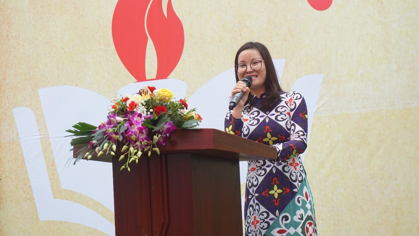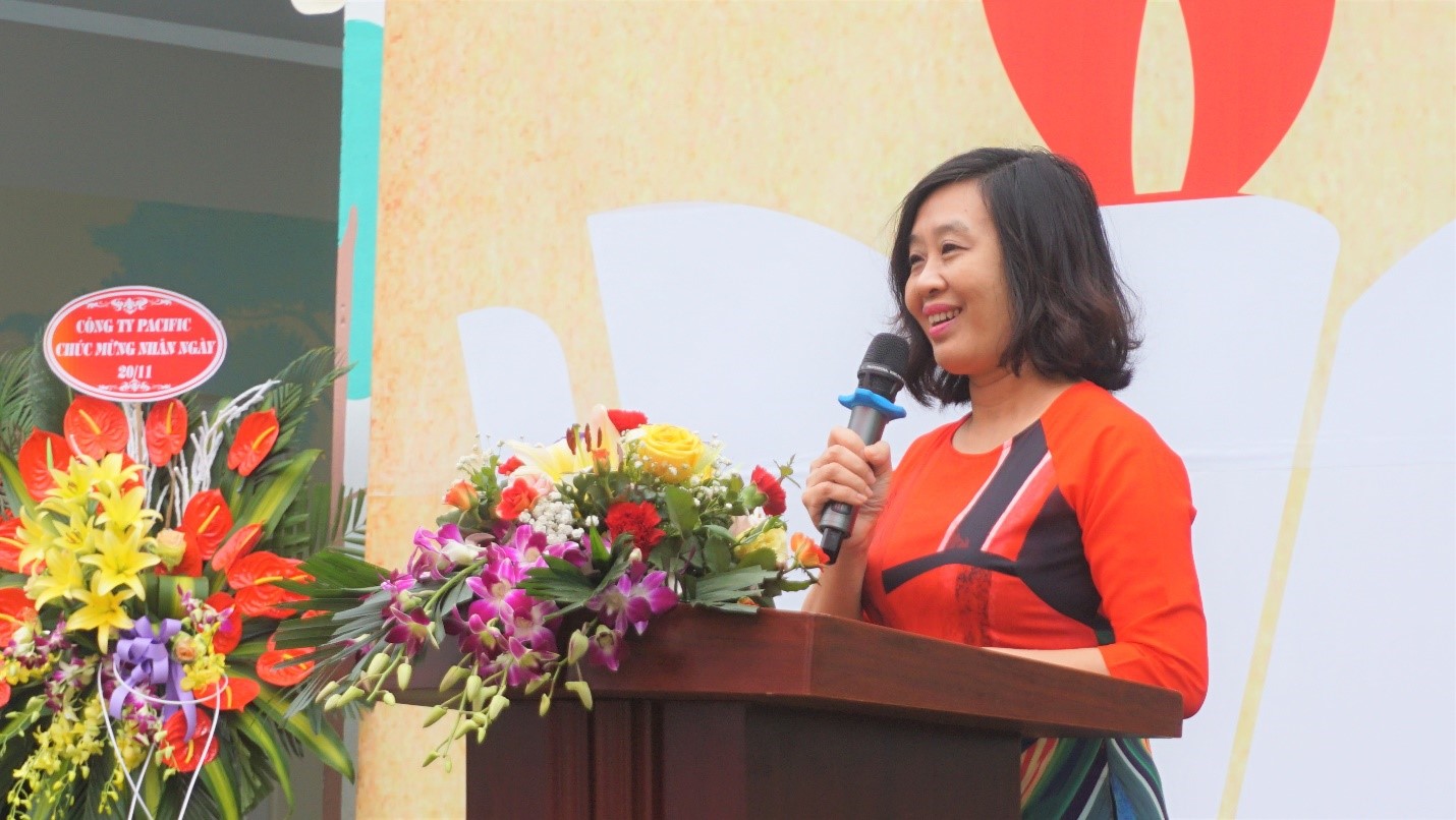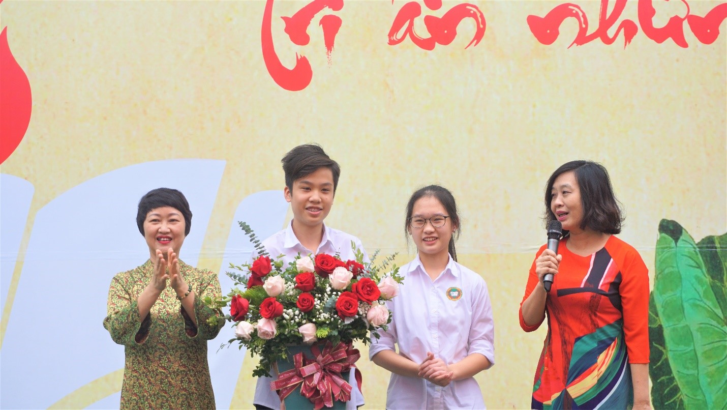Mở đầu buổi lễ, cô Nguyễn Thị Ngân Hoa – Hiệu trưởng Nhà trường đã phát biểu và nhắc nhở học sinh về lòng biết ơn và ghi nhớ truyền thống dân tộc. Bà Nguyễn Thị Uyên Lan – đại diện cha mẹ học sinh toàn trường đã cảm ơn, tri ân, tặng hoa các thầy cô Nhà trường.