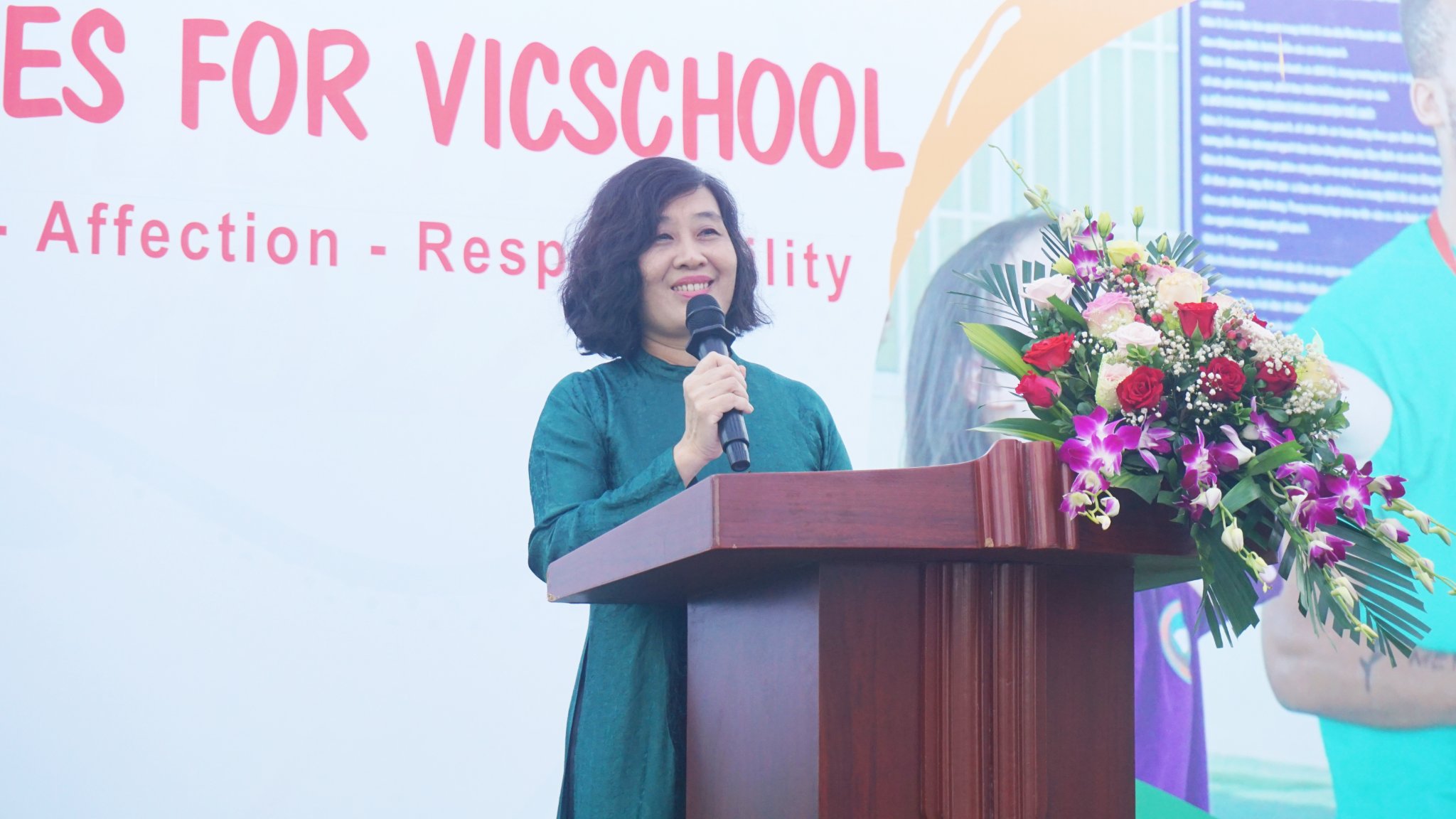 Phát biểu tại buổi lễ, cô Nguyễn Thị Ngân Hoa – Hiệu trưởng nhà trường đã có lời chào mừng tới các Vicsers và dặn dò các con hãy luôn chăm chỉ, cố gắng và nỗ lực hết mình trong năm học.