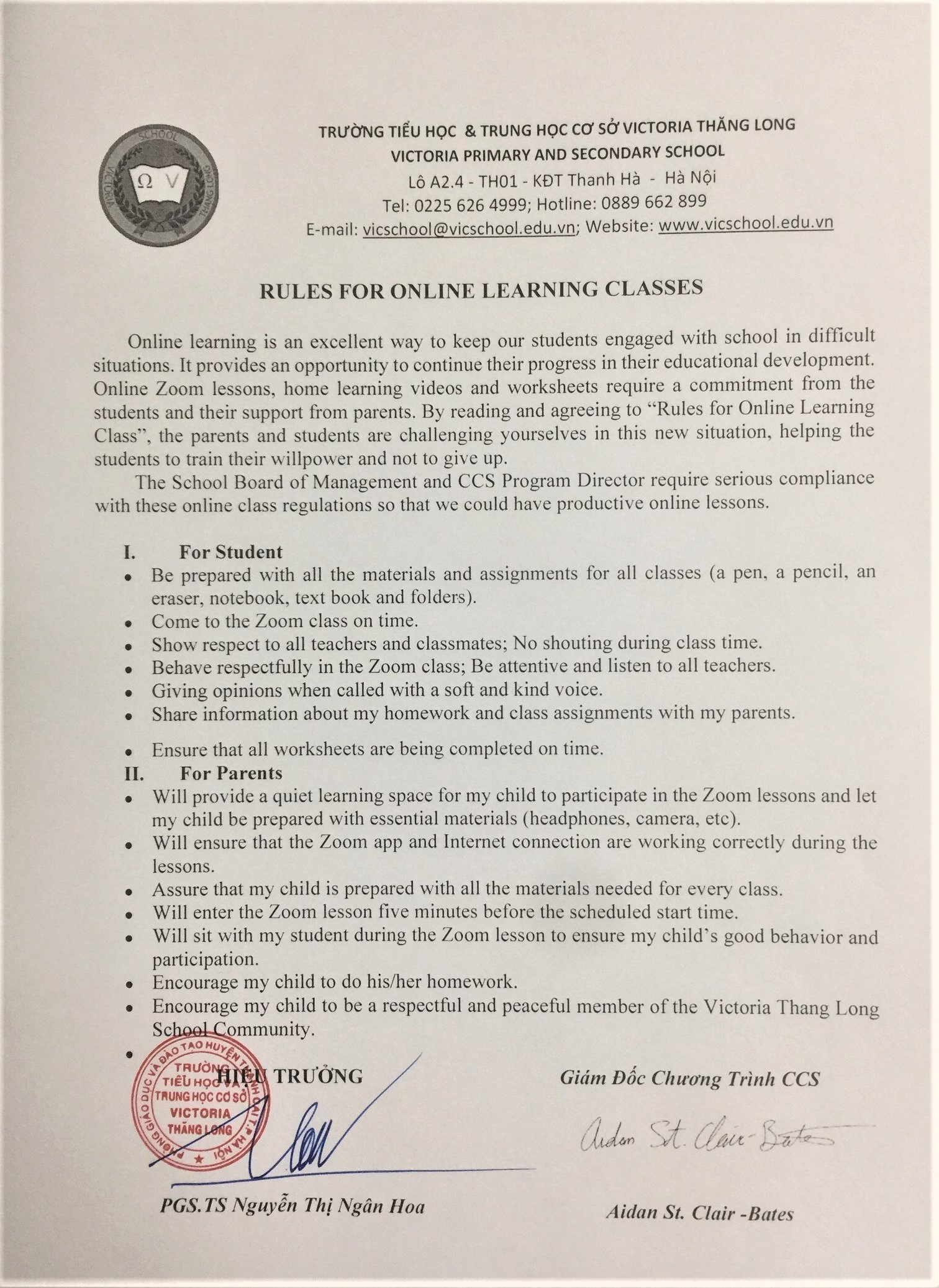 Quy tắc lớp học trực tuyến hiệu quả (dành cho PH & HS Victoria Thăng Long)