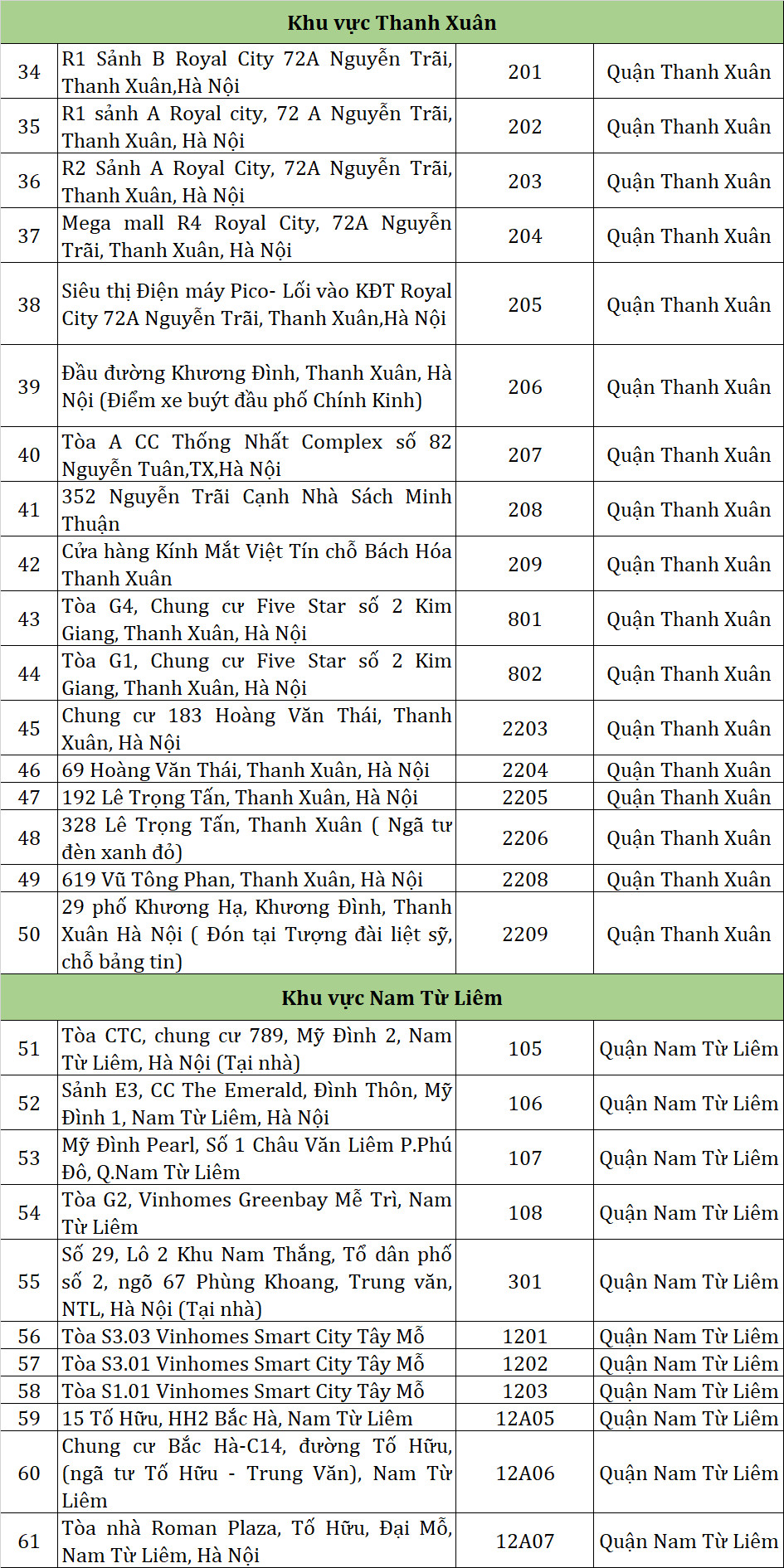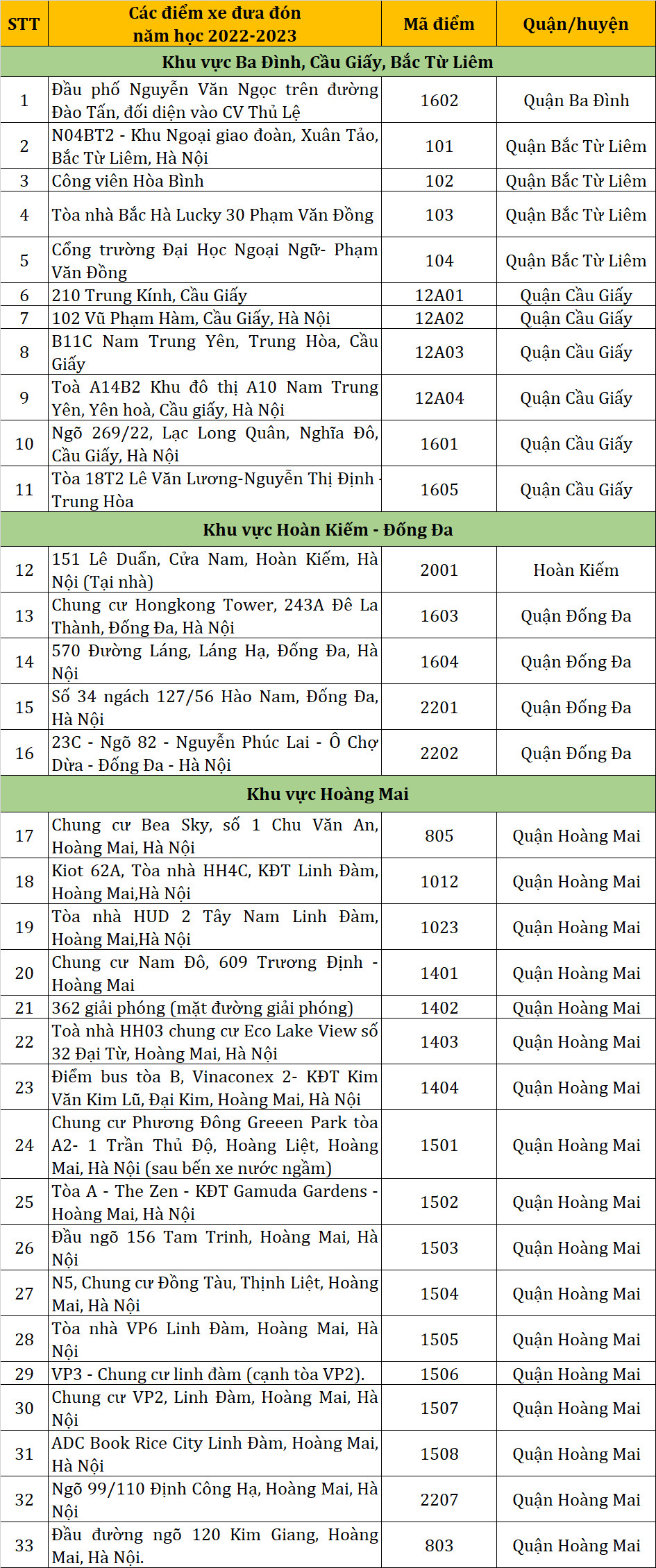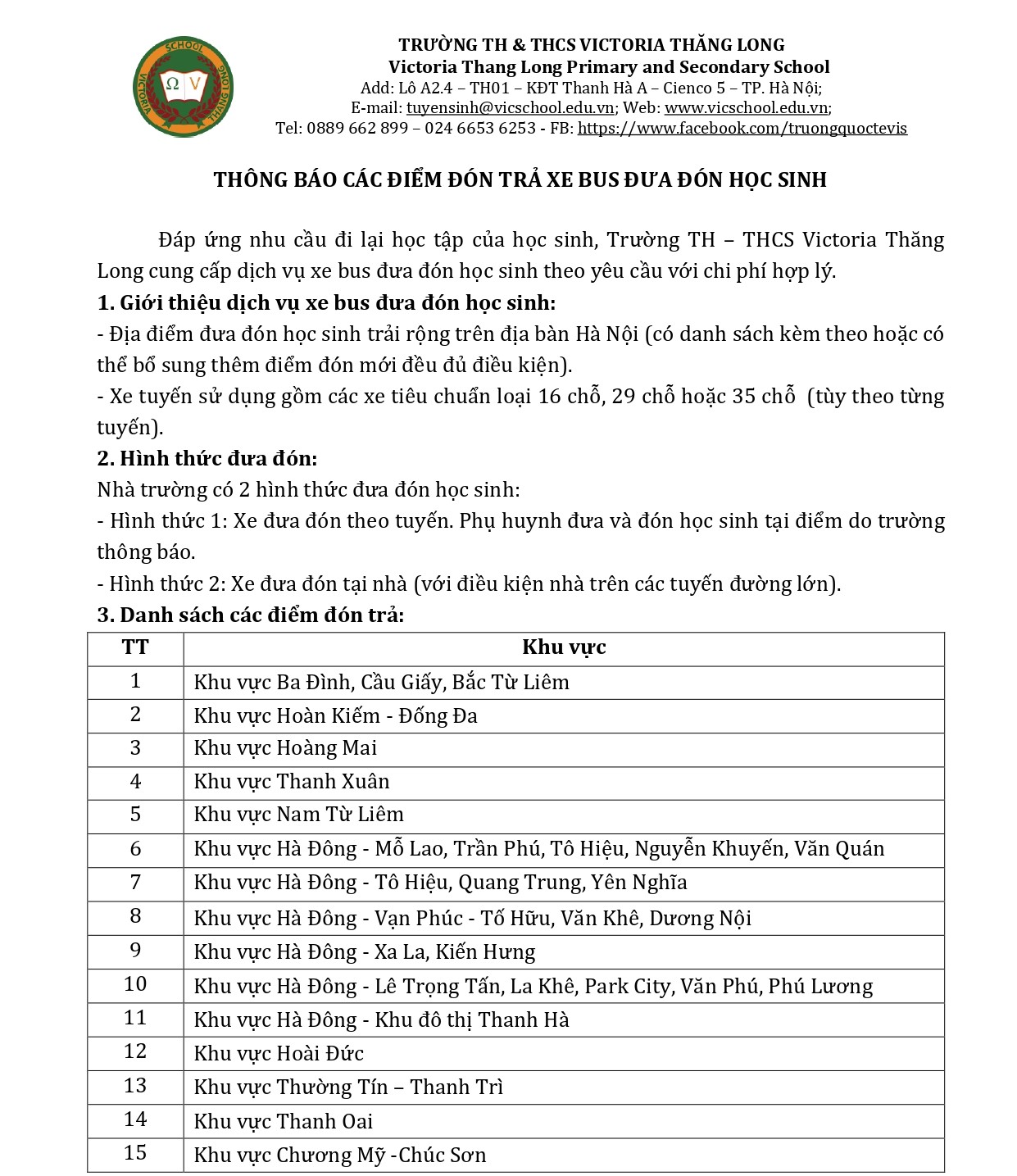 THÔNG BÁO CÁC ĐIỂM ĐÓN TRẢ XE BUS ĐƯA ĐÓN HỌC SINH