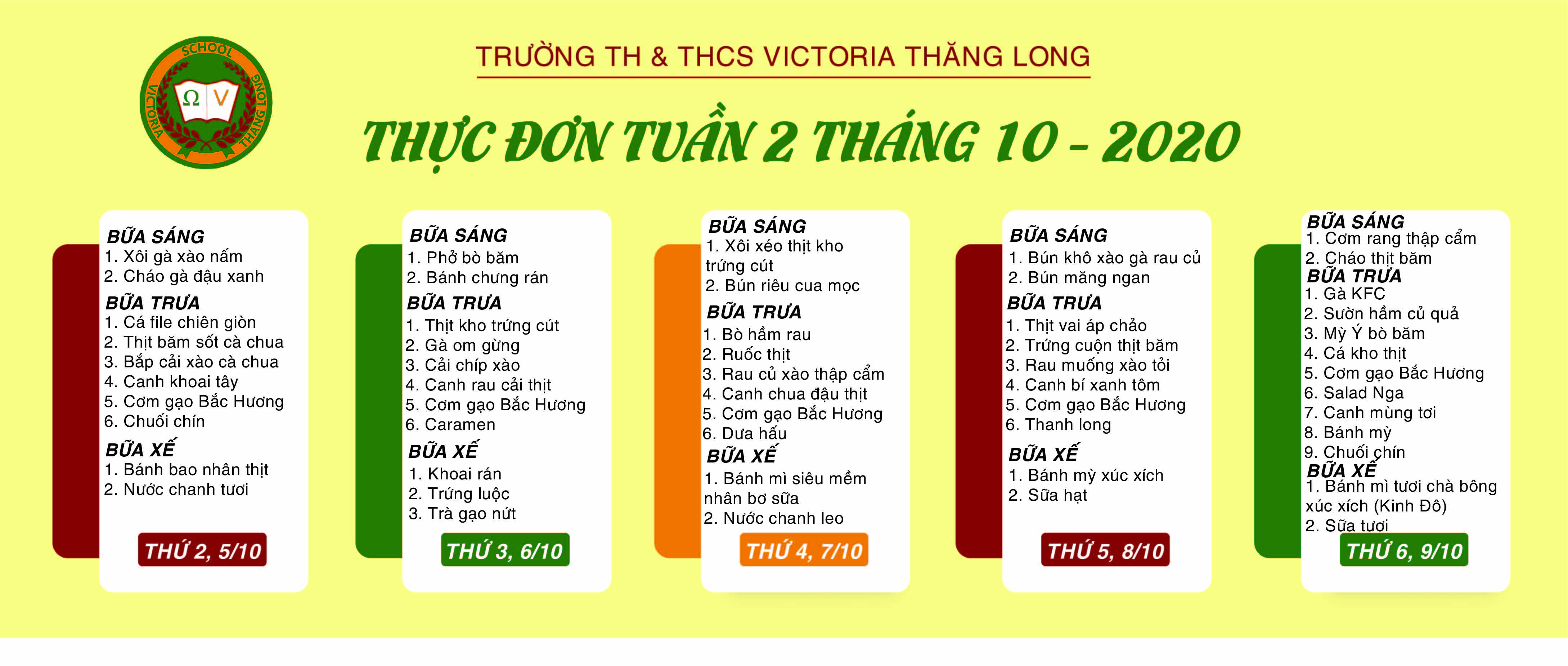 Thực đơn tuần 2 tháng 10 – 2020 (05/10 – 09/10)