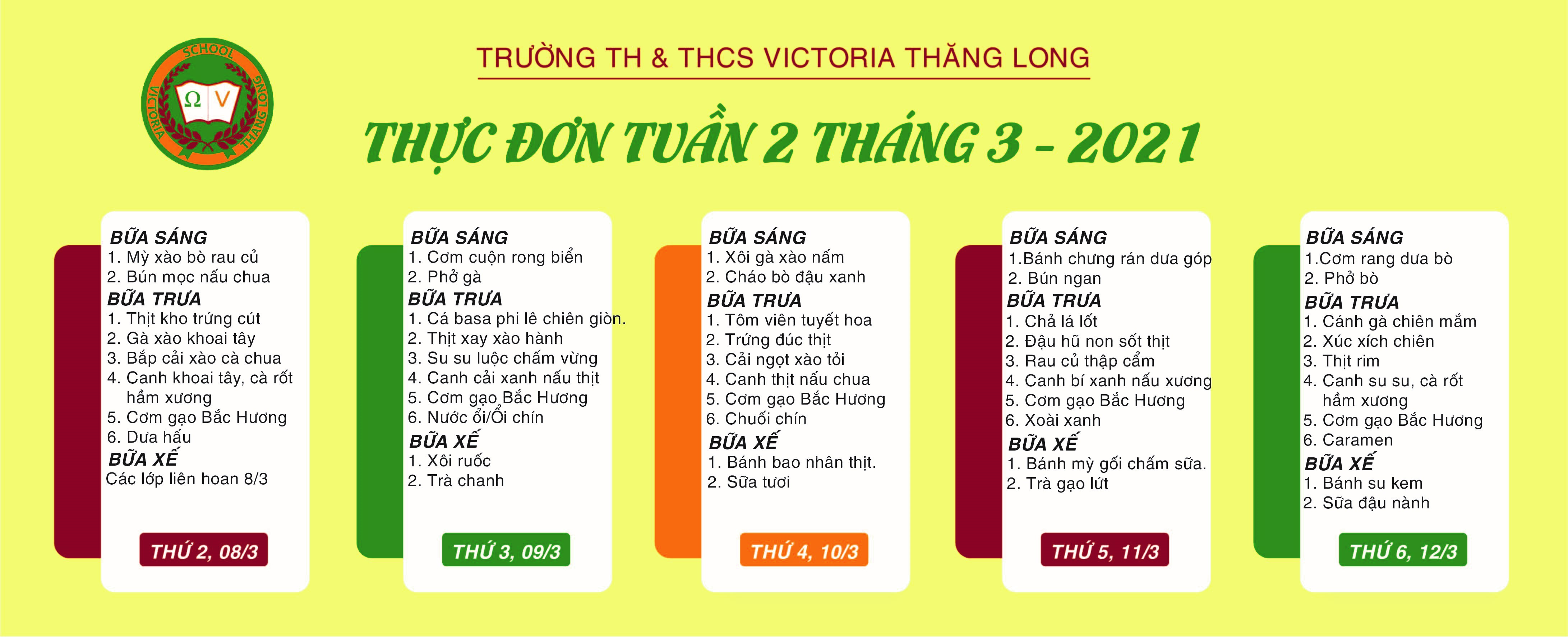 Thực đơn tuần 2 tháng 3/2021 (8/3 – 12/3/2021)