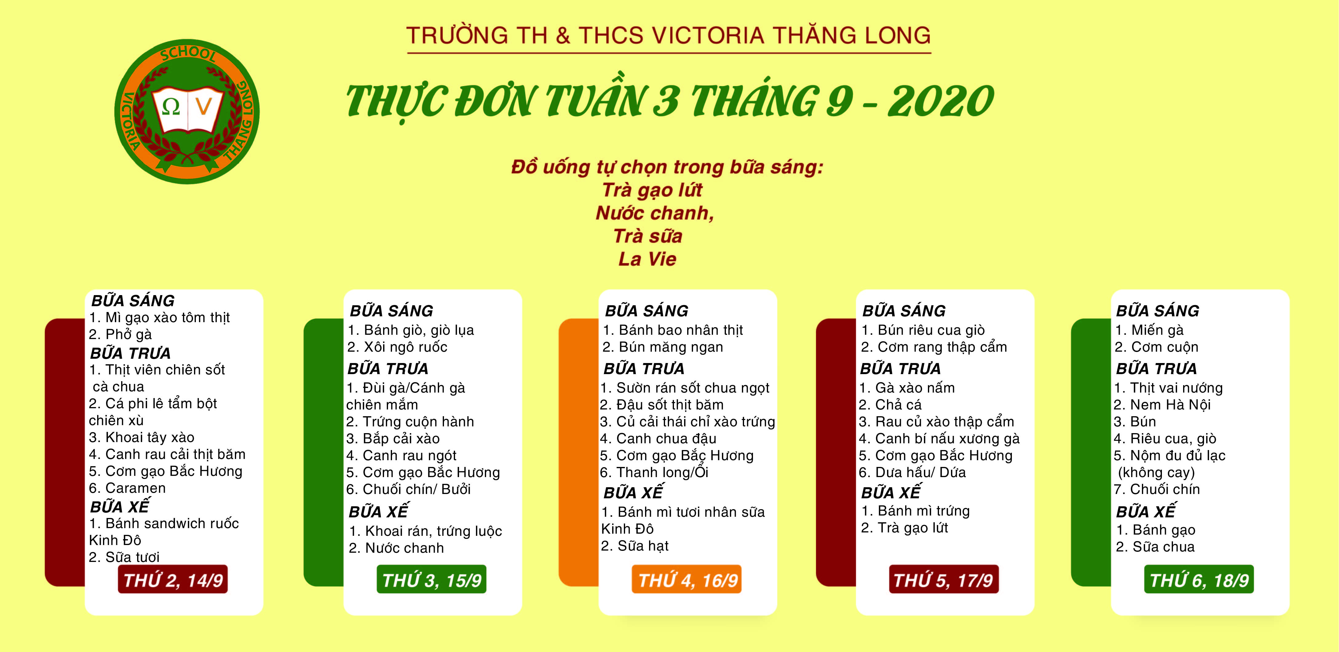 Thực đơn tuần 3 tháng 9/2020 (14/9-18/9/2020)