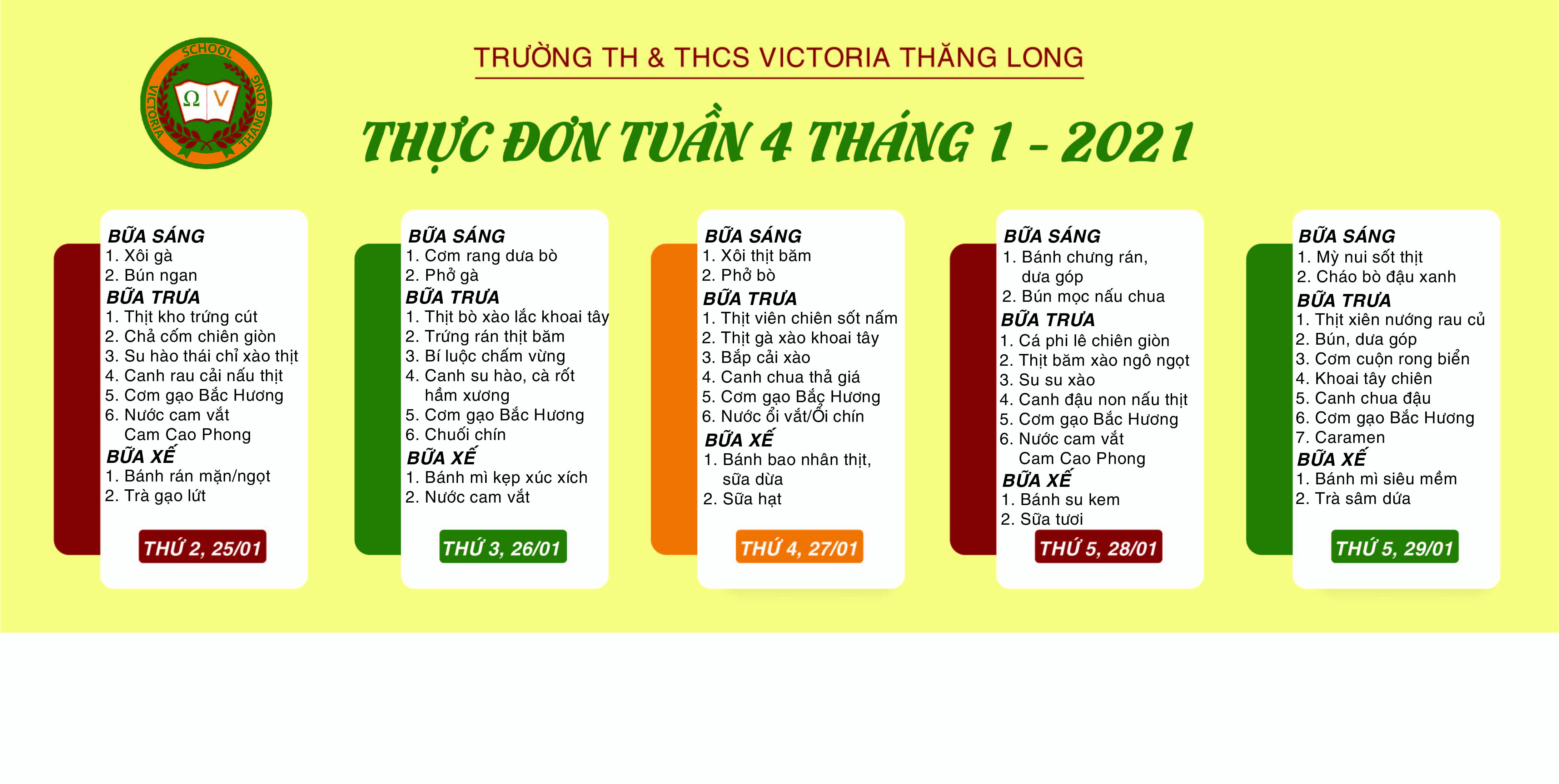 Thực đơn tuần 4 tháng 1/2021 (25/01 – 29/01/2021)