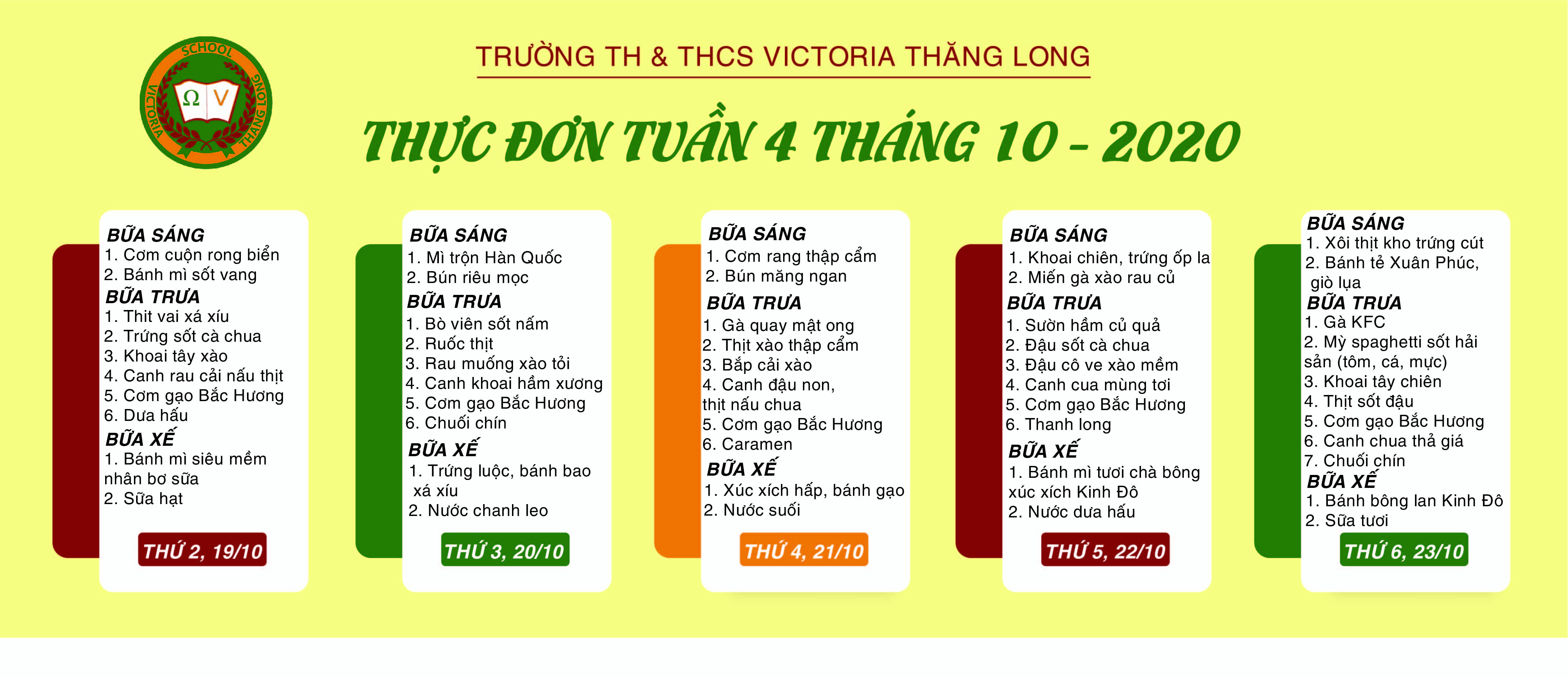 Thực đơn tuần 4 tháng 10 – 2020 (19/10 – 23/10/2020)