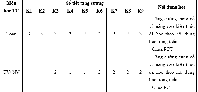 Định lượng và định tính các nội dung bổ sung, nâng cao để đảm bảo chất lượng của các môn học tăng cường chính khóa: Toán, Tiếng Việt/ Ngữ văn.