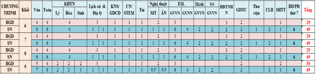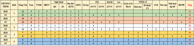 – Các chủ đề, dự án học tập được tập trung ở các môn ESL, Sci, Toán, Tiếng Việt/ Ngữ văn, Mĩ thuật và được triển khai theo lịch năm học.