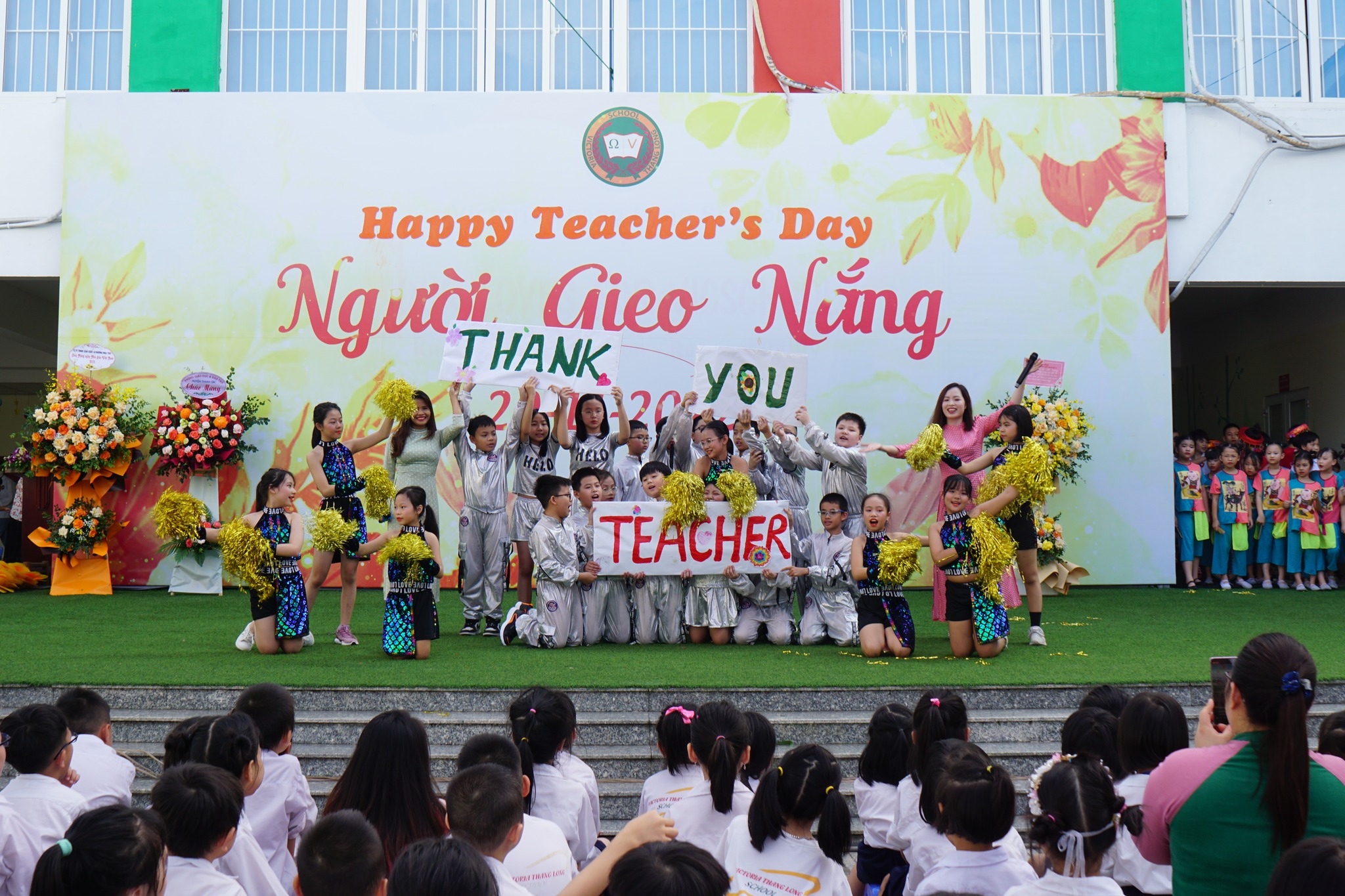 Tham dự buổi lễ, Bà Nguyễn Thị Uyên Lan – Trưởng ban đại diện Cha Mẹ học sinh Trường chia sẻ: “Chứng kiến sự trưởng thành, khôn lớn của các con mỗi ngày, chúng tôi ghi nhận và biết ơn sự thương yêu, tận tâm dạy dỗ của các thầy cô giáo… Chúc các thầy cô mạnh khỏe, luôn vững vàng để chèo lái con đò đưa học sinh đến bến bờ tri thức”.