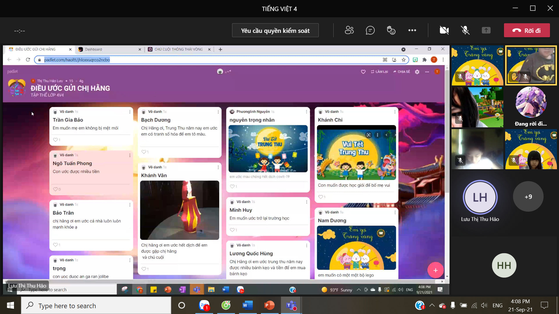 Kết thúc gameshow “Chú cuội thông thái”, chúng tớ cùng thầy cô và các bạn sử dụng ứng dụng Padlet để viết những điều ước, mong muốn, hi vọng gửi tới chị Hằng nhân ngày Tết Thiếu nhi.