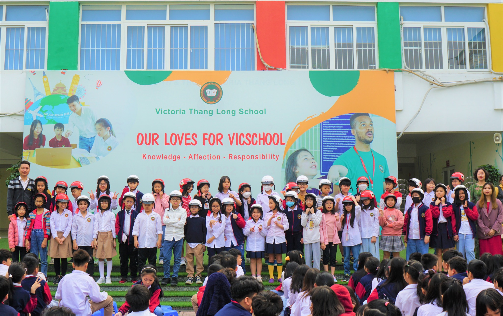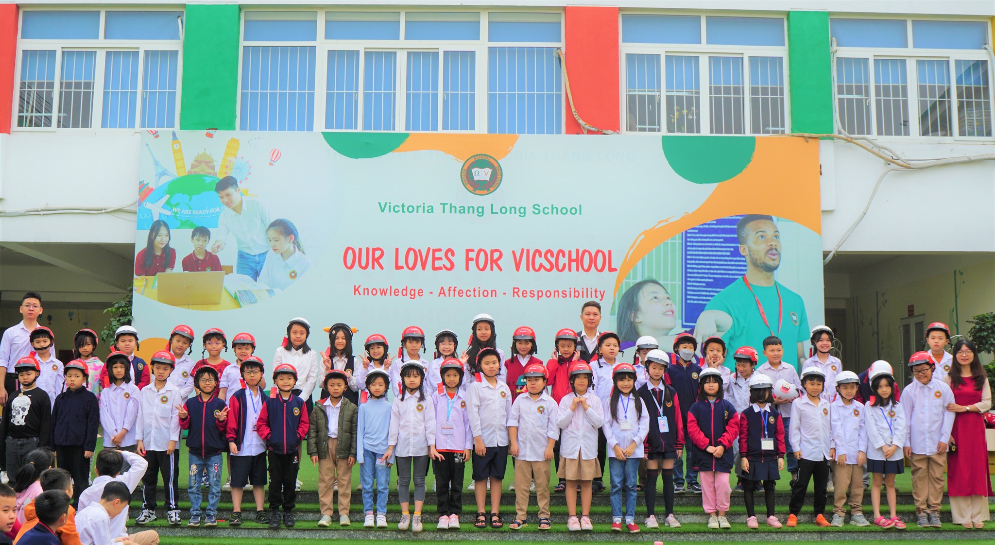 Bên cạnh đó, BGH Nhà trường tiếp tục phổ biến và nâng cao nhận thức về an toàn giao thông cho tất cả Vicsers và thưc hiện chương trình trao tặng hơn 200 mũ bảo hiểm cho Vicsers khối 4, 5. Hy vọng rằng, những chiếc mũ sẽ luôn là người bạn đồng hành và góp phần đảm bảo an toàn cho Vicsers khi di chuyển trên các phương tiện xe moto, xe gắn máy, xe điện.