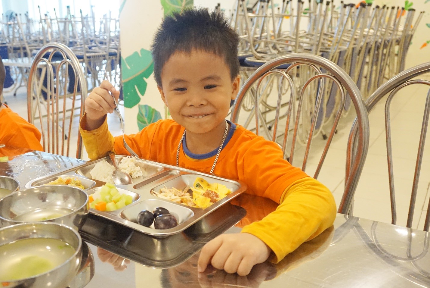 Đến giờ ăn trưa rồi và chúng mình cùng nhau đi xuống căng-tin thôi nào. Cô dặn chúng mình rằng, trước khi ăn thì phải rửa tay, vệ sinh thật sạch sẽ. Khi vào nhà ăn phải xếp hàng, không được chen lấn xô đẩy, chạy nhảy, không nô đùa, trêu chọc bạn trong khi đang ăn…