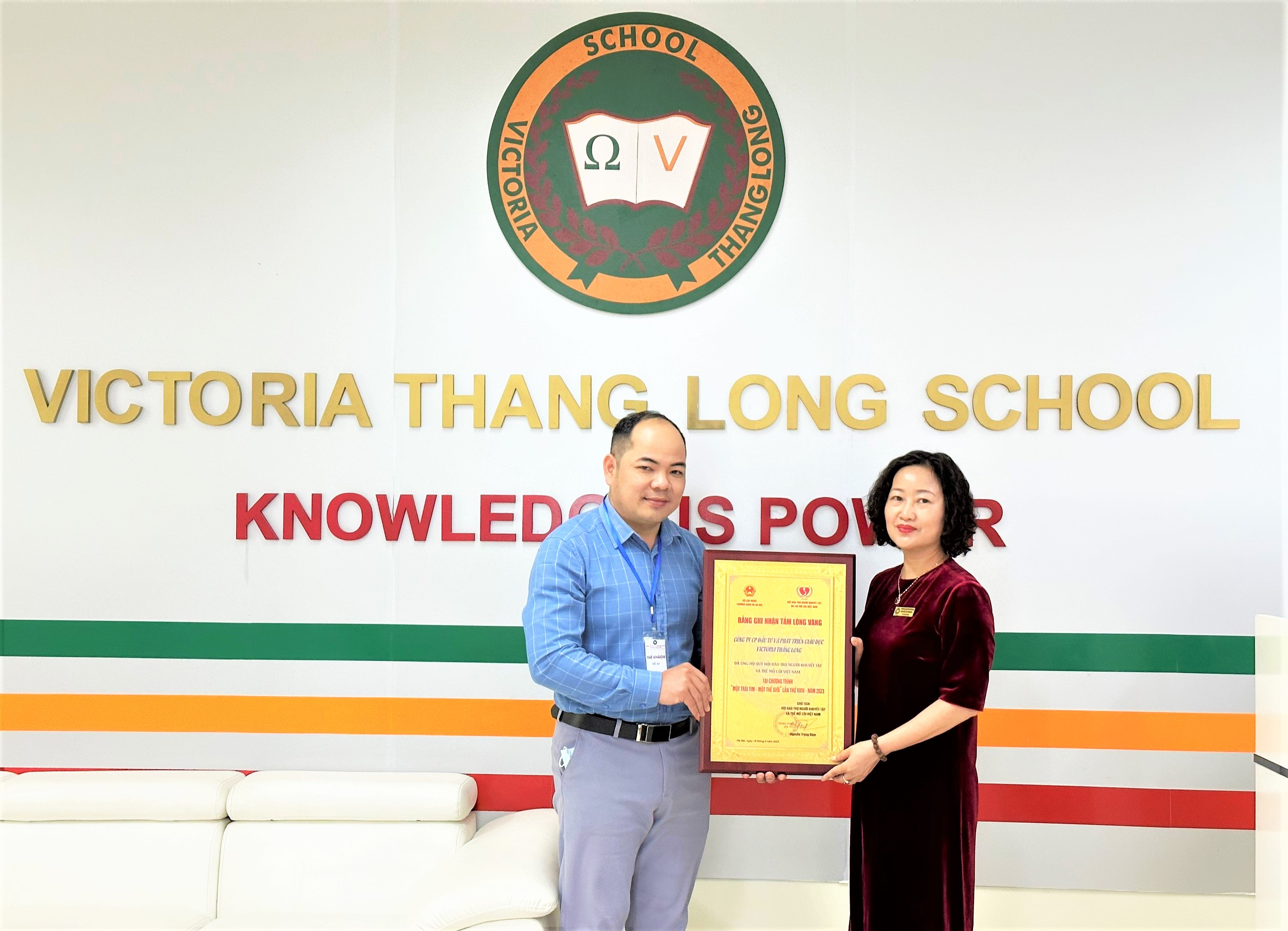 Nhà trường đã trao tặng số tiền 20.000.000 VNĐ (được trích từ quỹ thiện nguyện của Victoria Thăng Long) với mong muốn góp phần trao tặng quà cho trẻ mồ côi, người khuyết tật có hoàn cảnh khó khăn tại các bản của xã Tà Xùa, huyện Bắc Yên, tỉnh Sơn La; góp phần động viên, khích lệ người khuyết tật, các em nhỏ mồ côi nơi đây hướng tới một cuộc sống vui tươi, phấn khởi, có cơ hội và động lực vươn lên trong cuộc sống. Nhà giáo Nguyễn Thị Vĩnh Hà – Phó hiệu trưởng Nhà trường đã đại diện cho cộng đồng thiện nguyện Victoria Thăng Long nhận bằng Tri ân và kỷ niệm chương của chương trình “Một trái tim – Một thế giới” lần thứ XVIII từ đại diện Ban tổ chức.