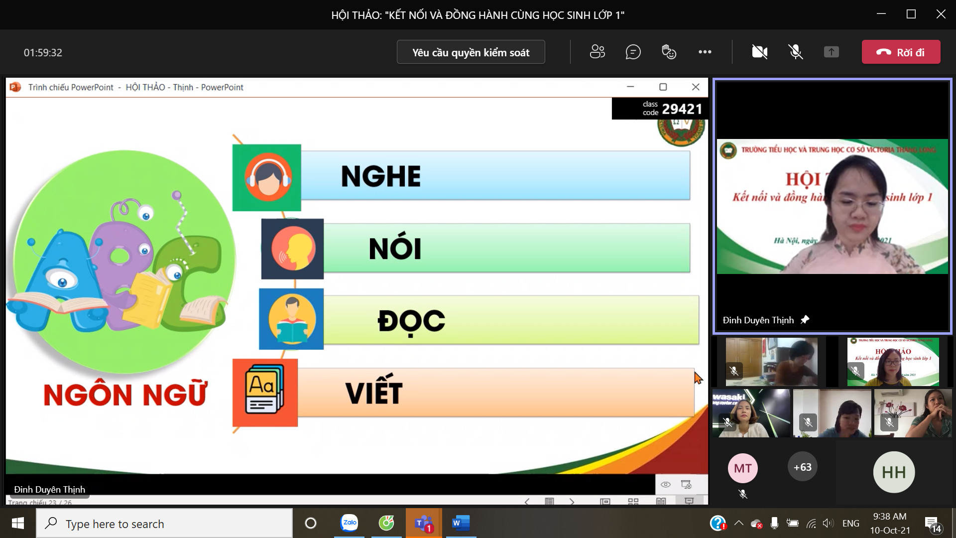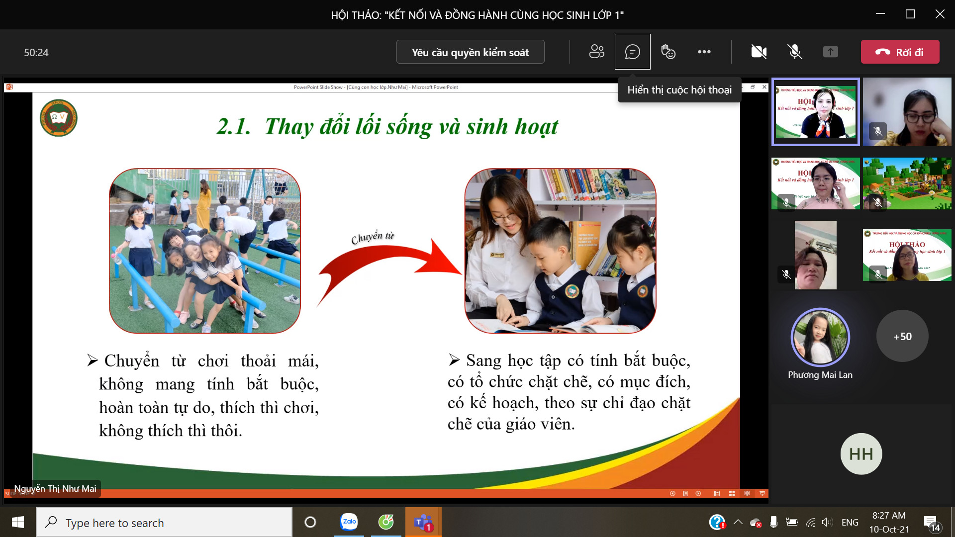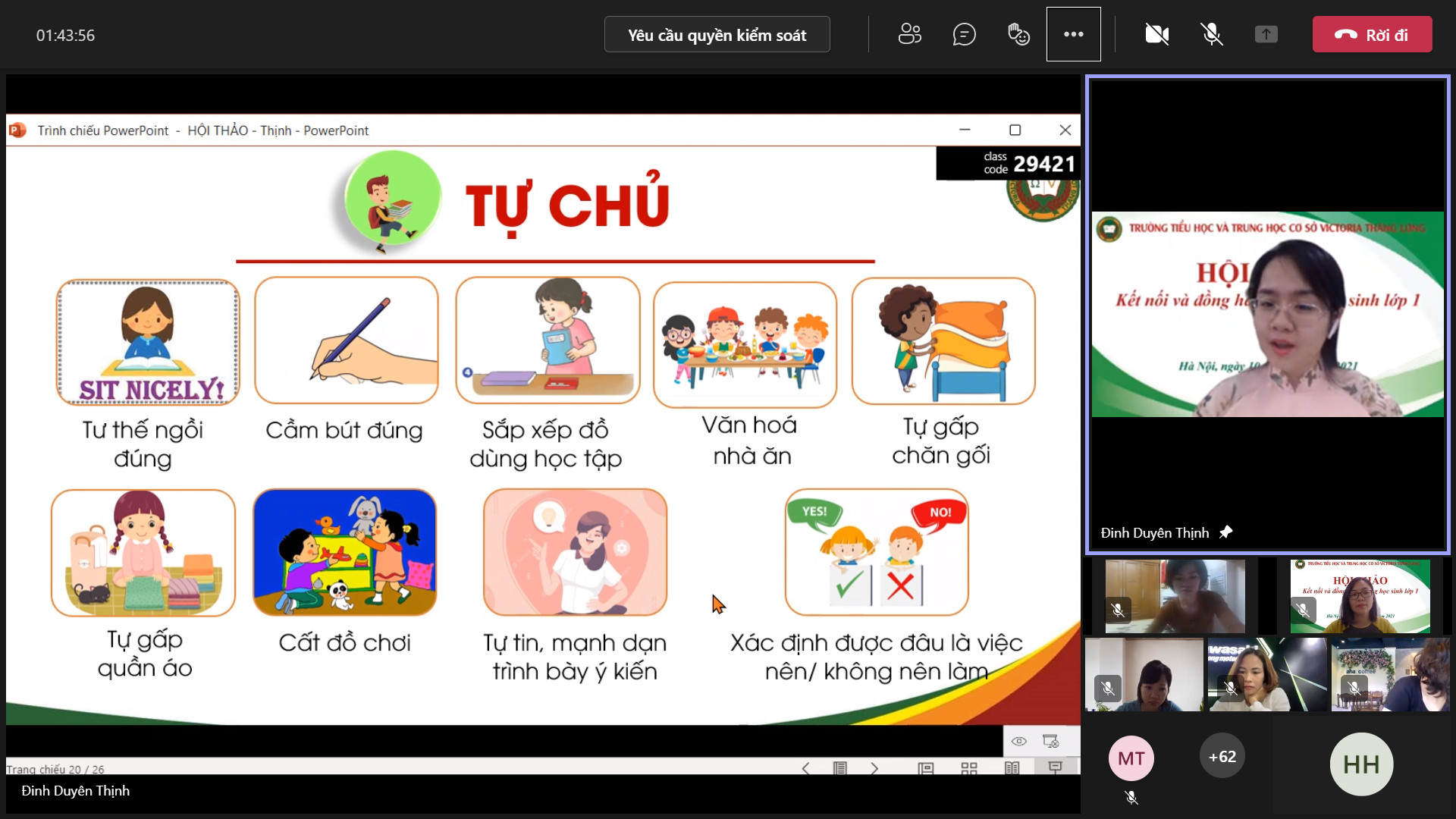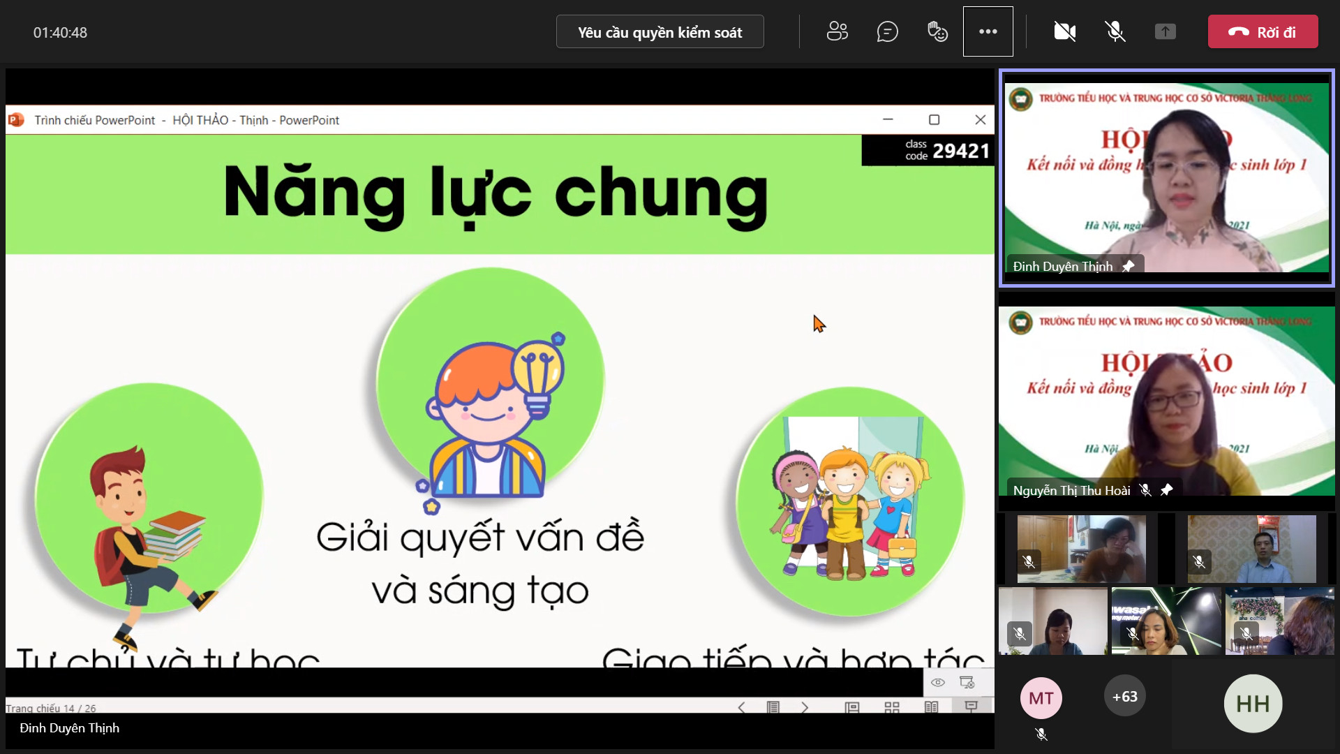 8h00 ngày 10/10/2021 Trường Tiểu học và Trung học cơ sở Victoria Thăng Long đã tổ chức Hội thảo trực tuyến chia sẻ, tư vấn với chủ đề: “Victoria Thăng Long đồng hành cùng học sinh lớp 1”. Buổi Hội thảo được tổ chức trên nền tảng Microsoft Teams và phát trực tiếp trên kênh Fanpage của Nhà trường đã thu hút được sự quan tâm của đông đảo của quý vị phụ huynh và thầy, cô giáo.